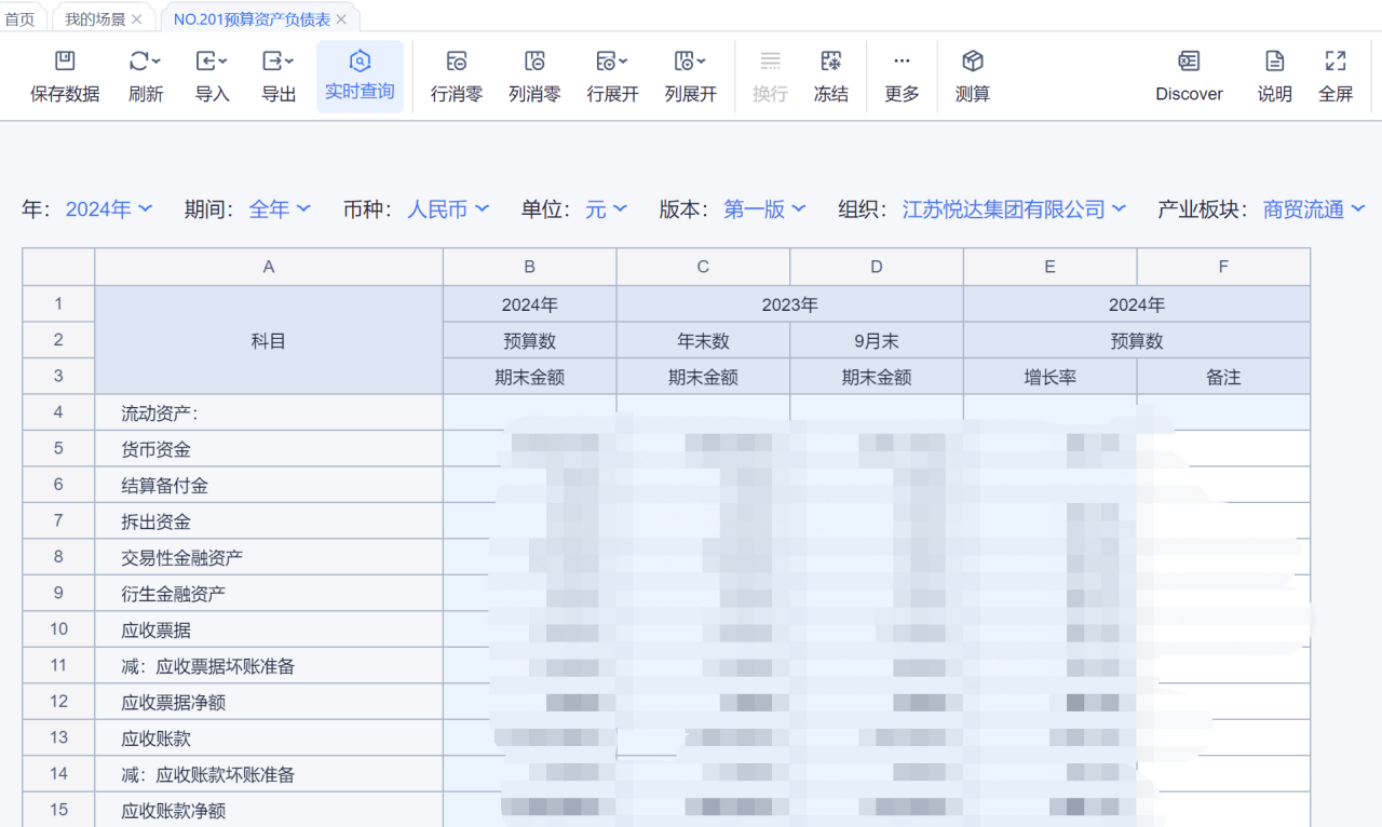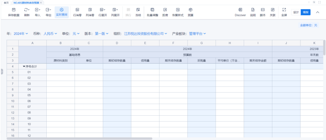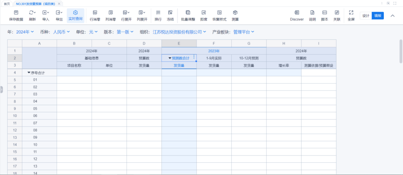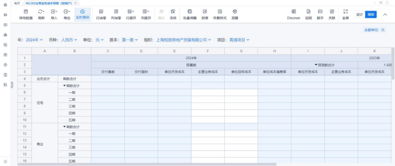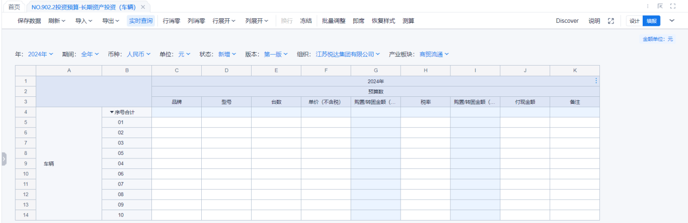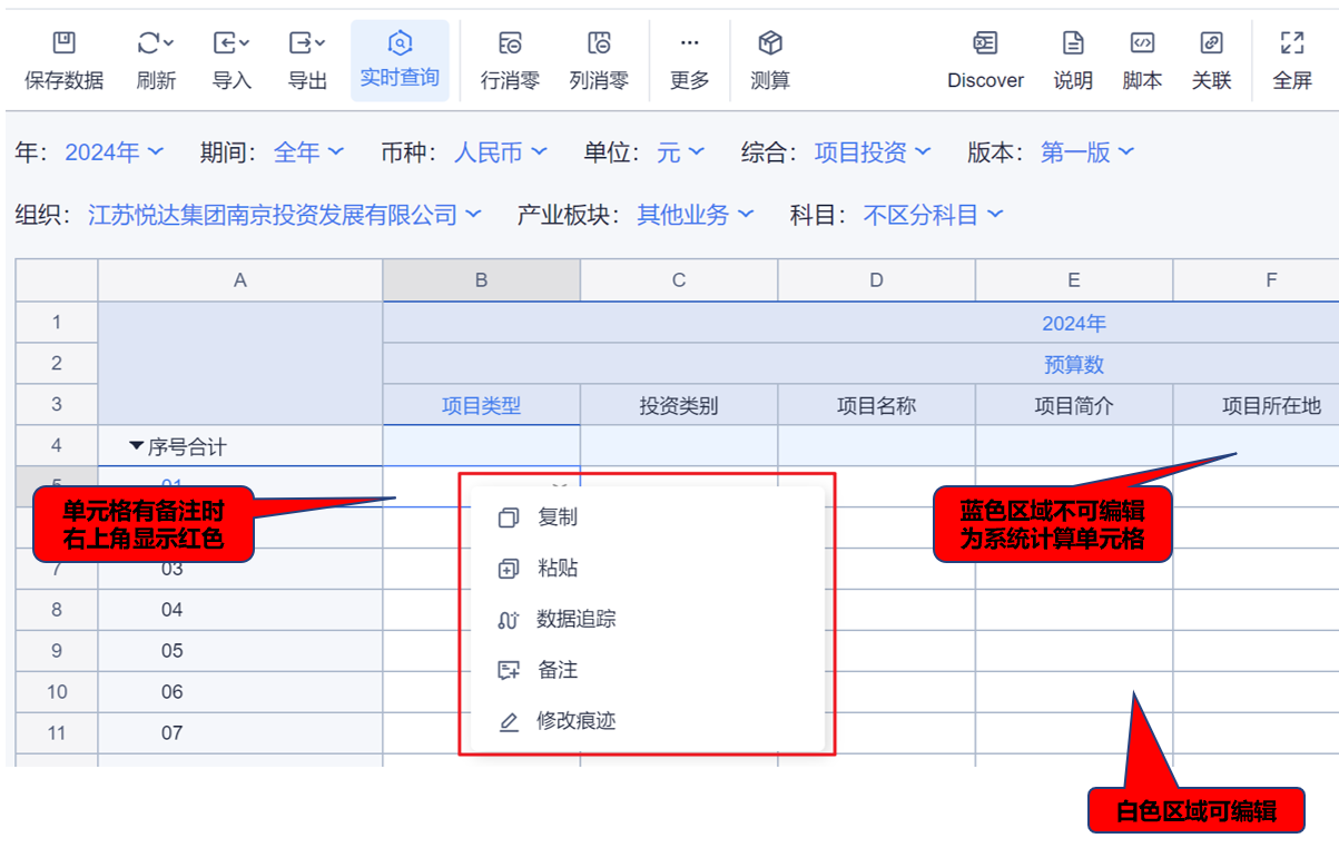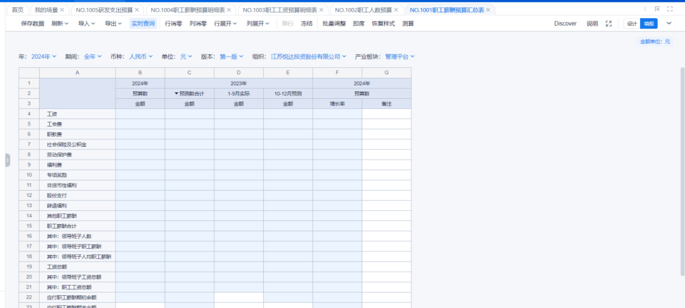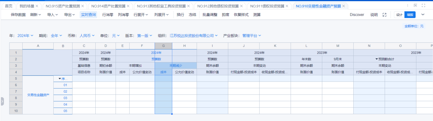 1、本表分产品类/项目类/房地产类/金融类展示年度预算模块的基础信息以及预算数,取自《主营业务收入预算》