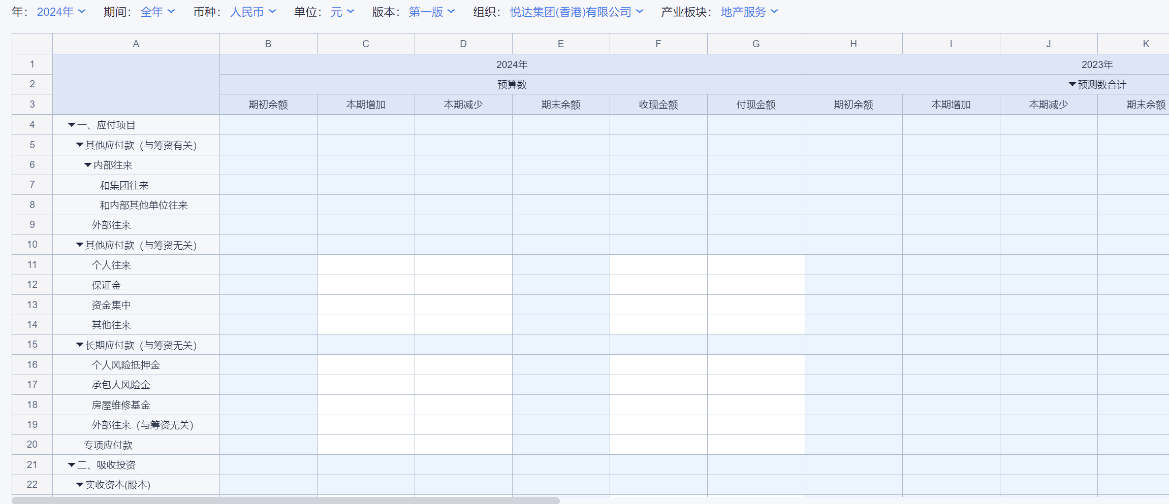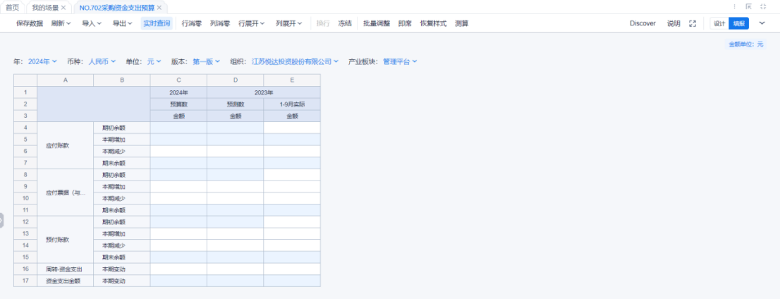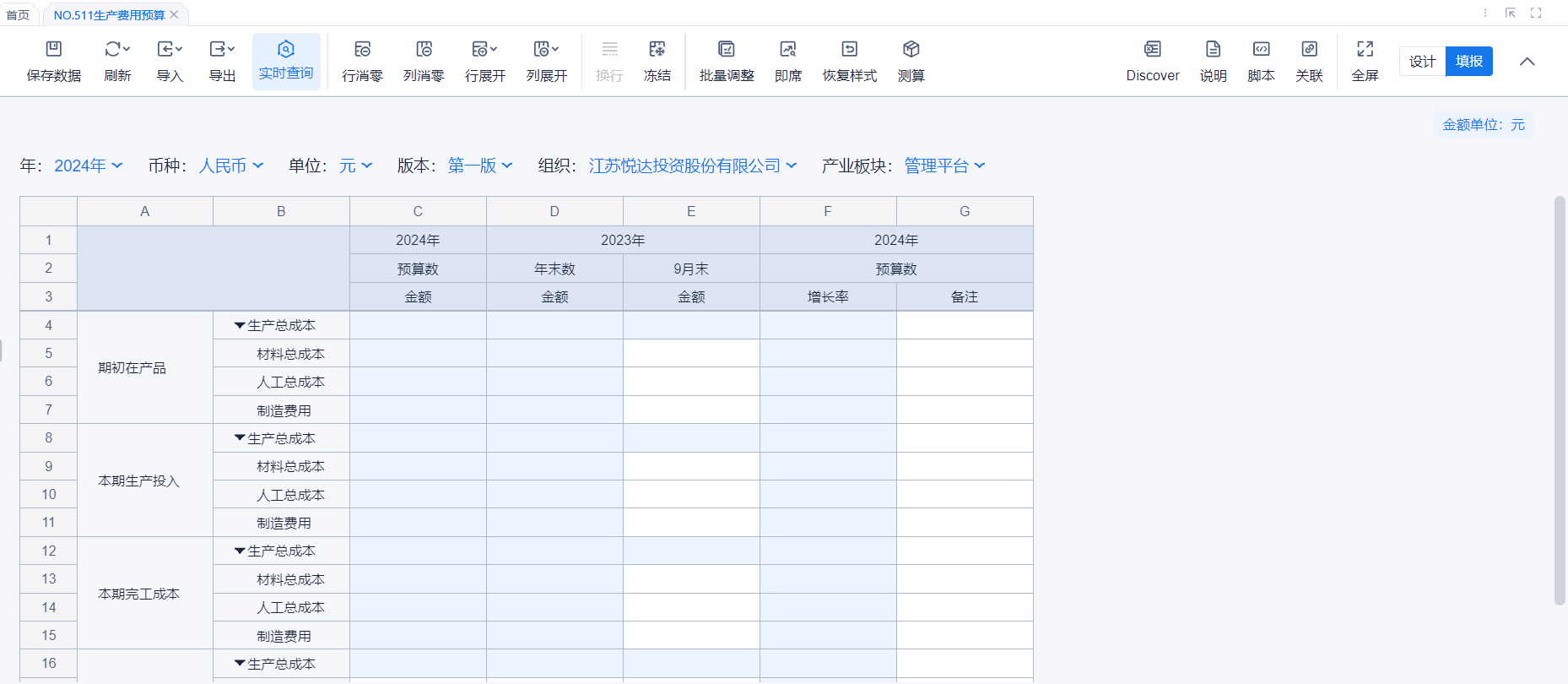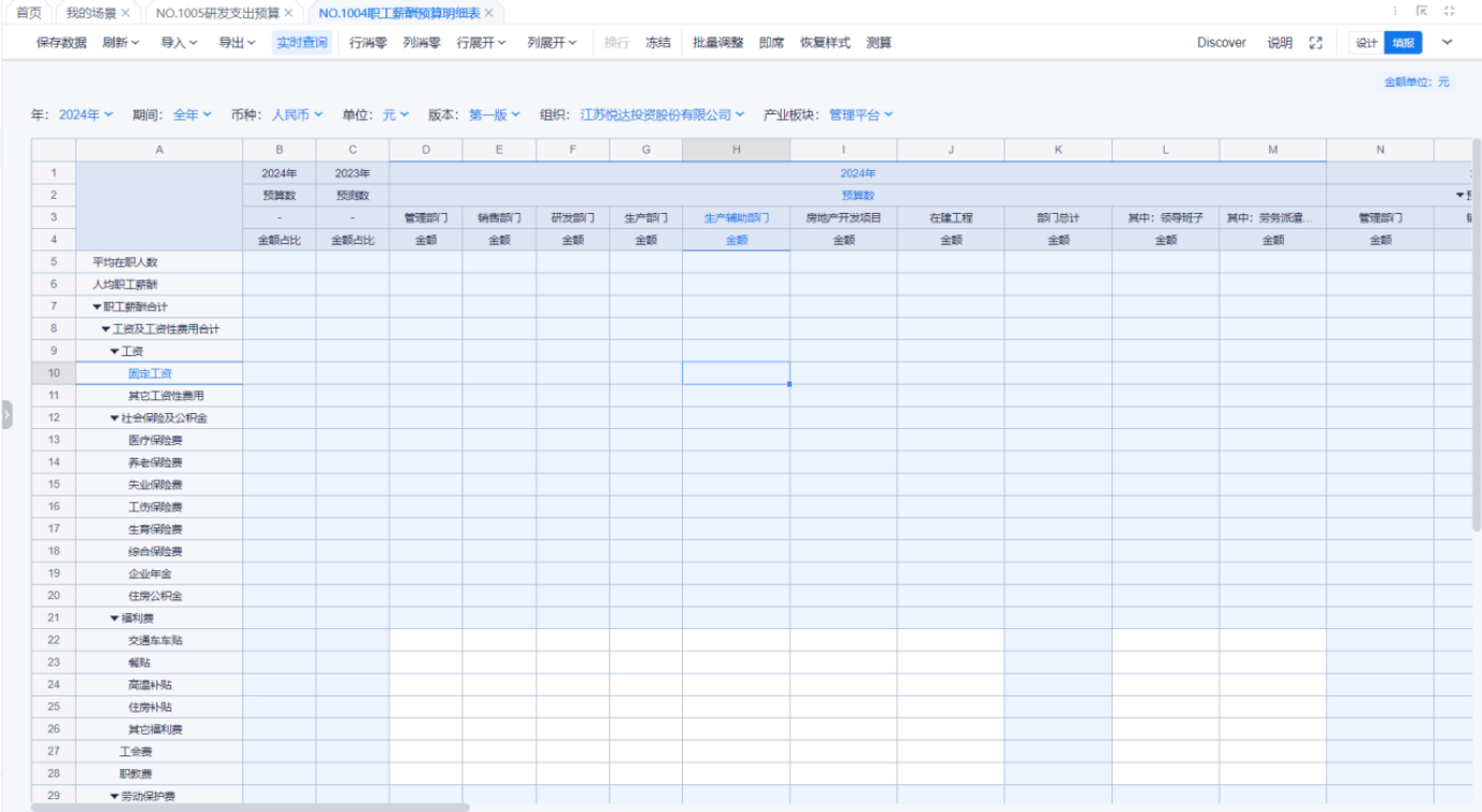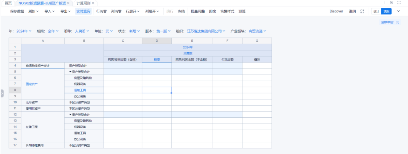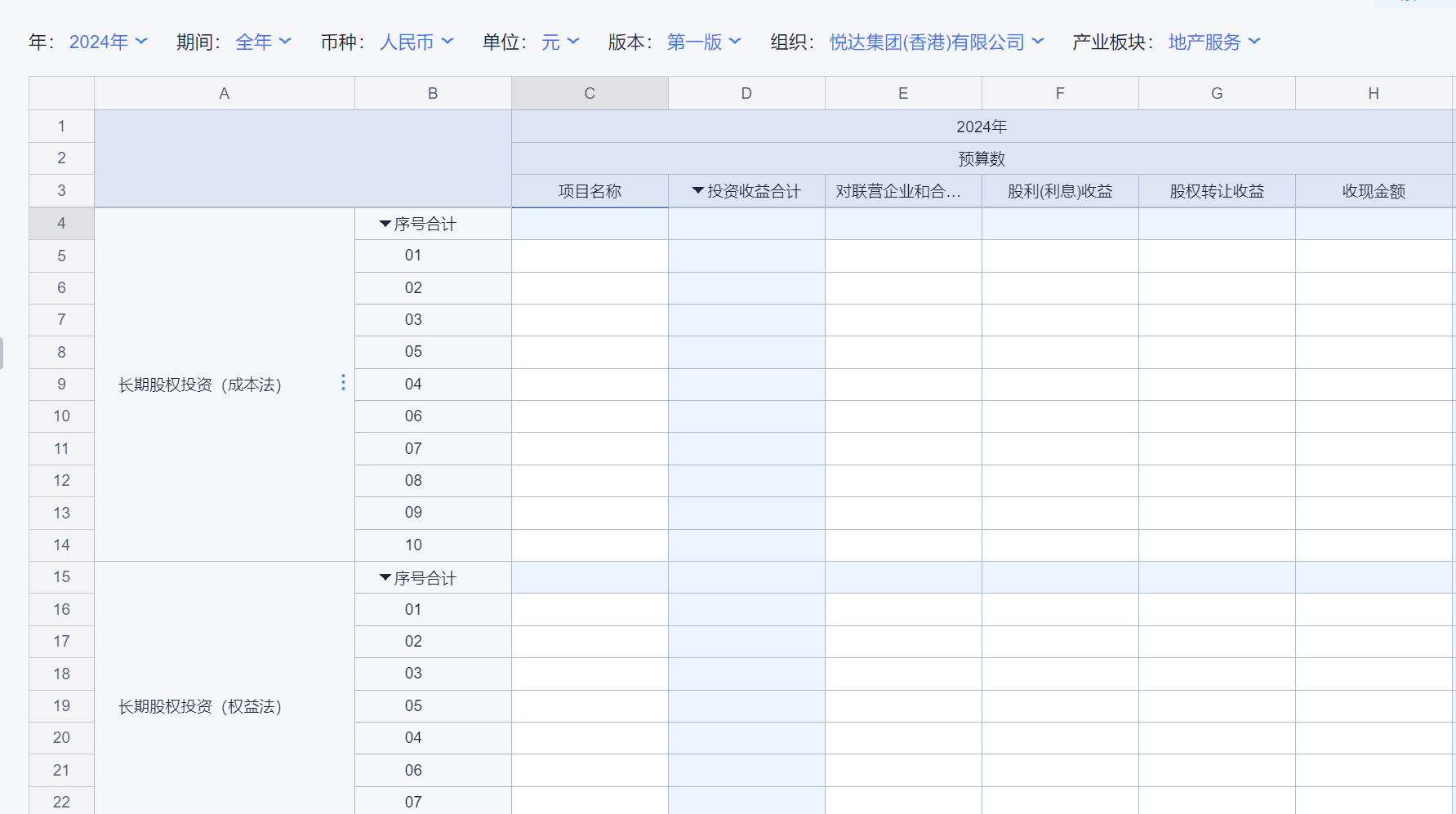 1、本表分产品类/项目类/房地产类/金融类展示年度预算模块的基础信息以及预算数,取自《主营业务收入预算》