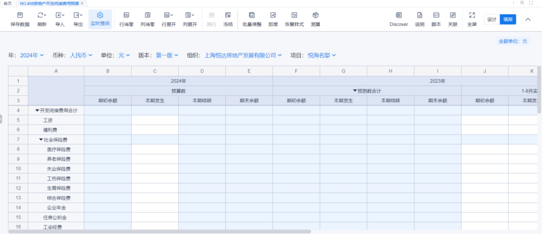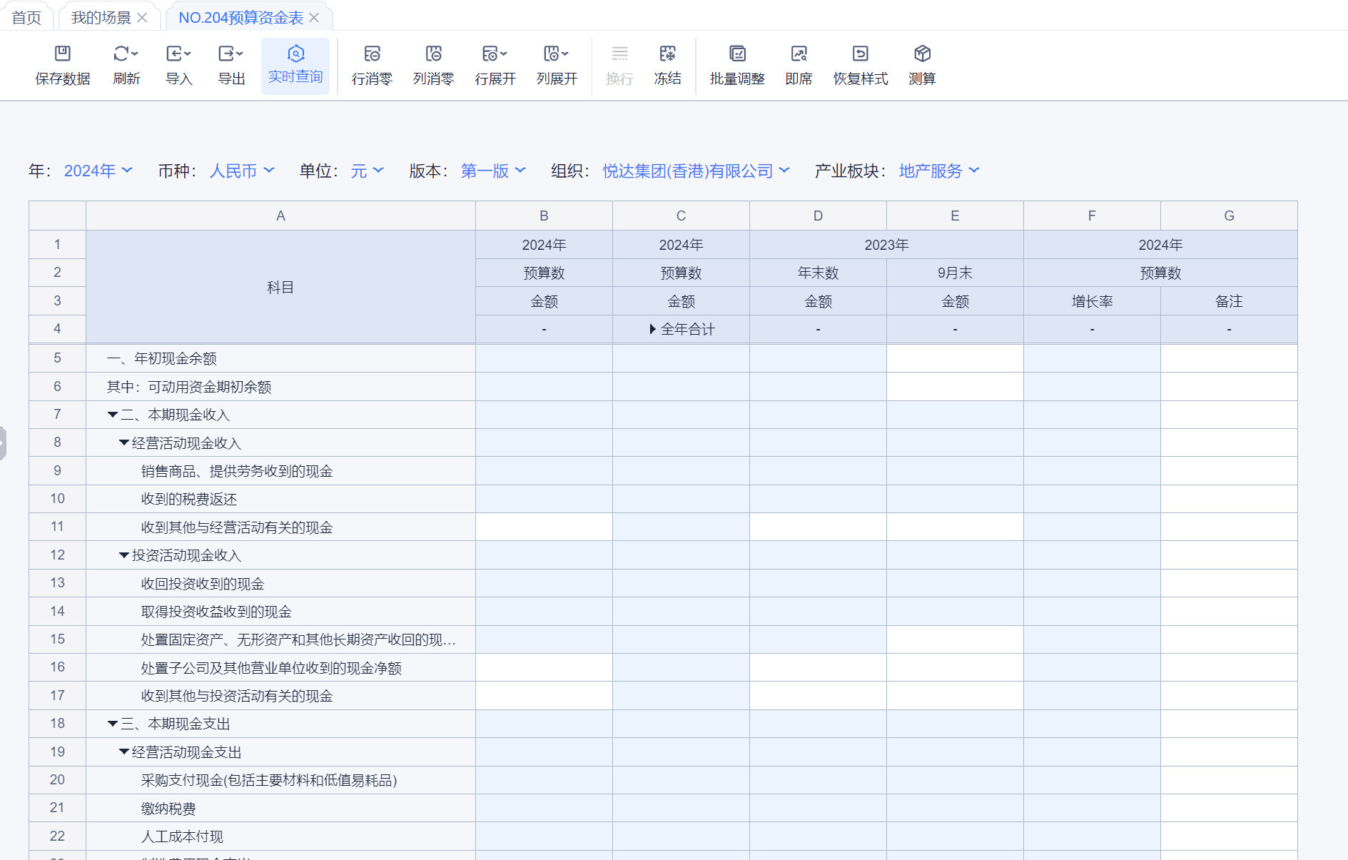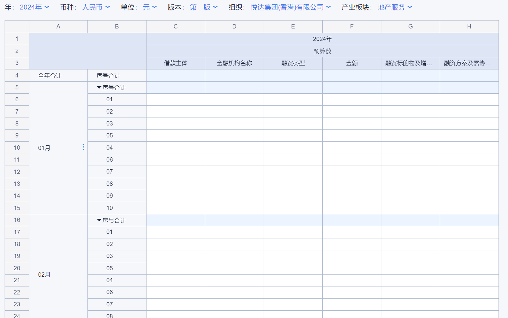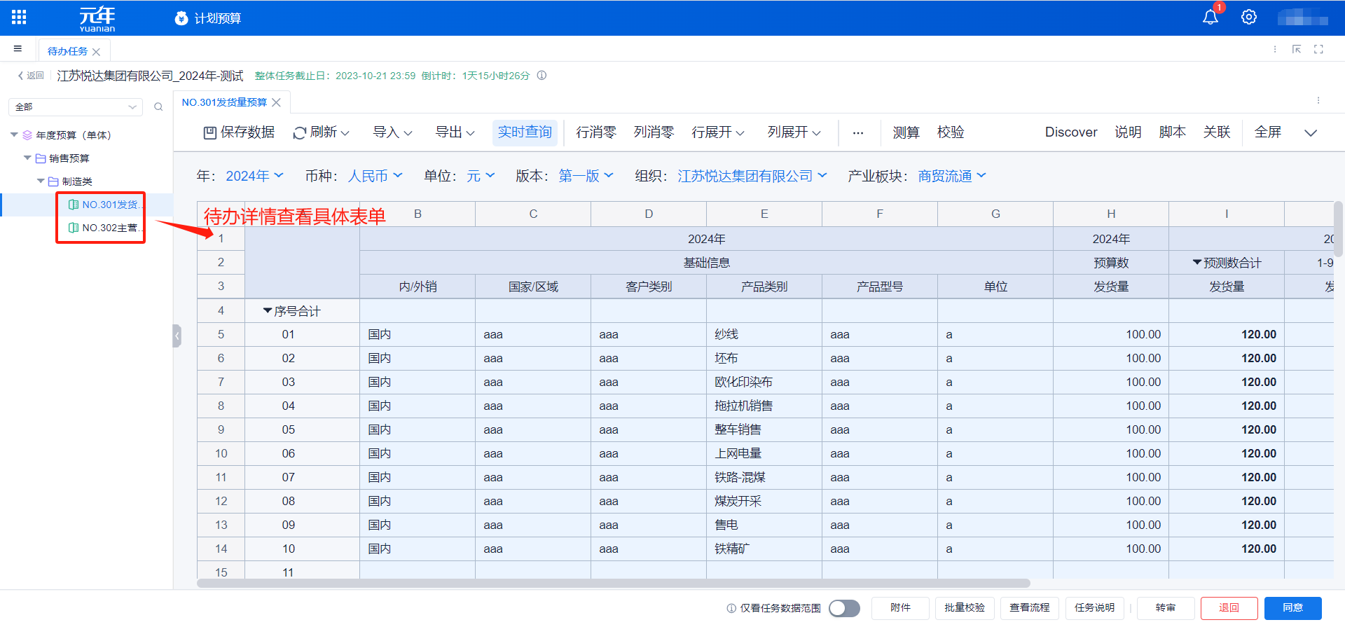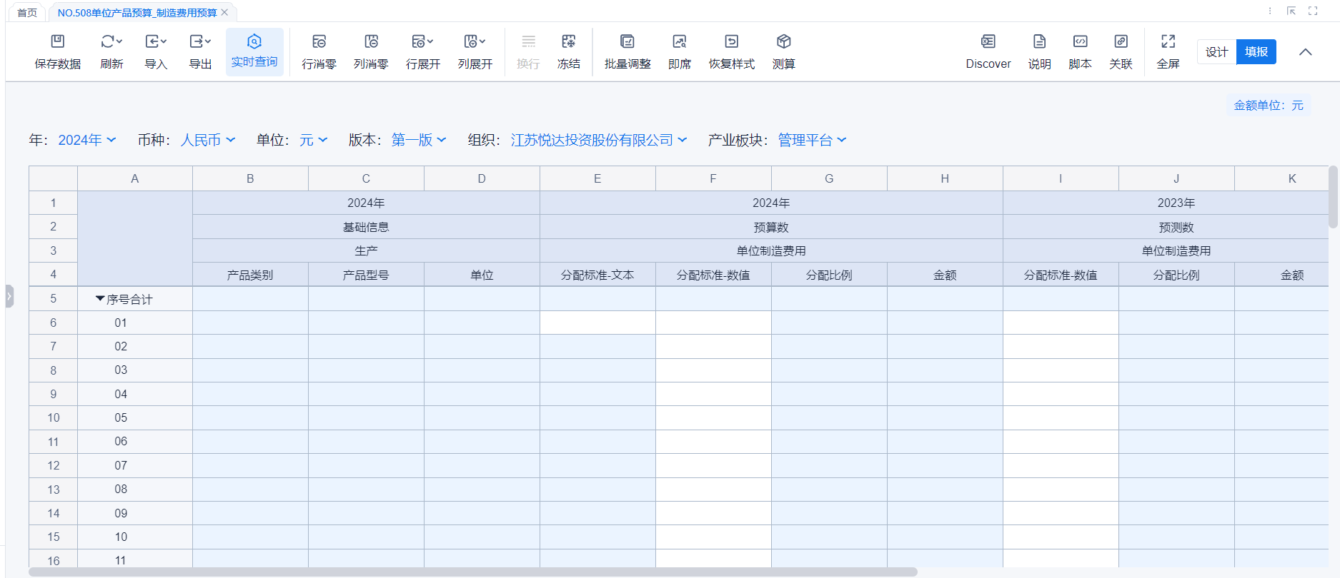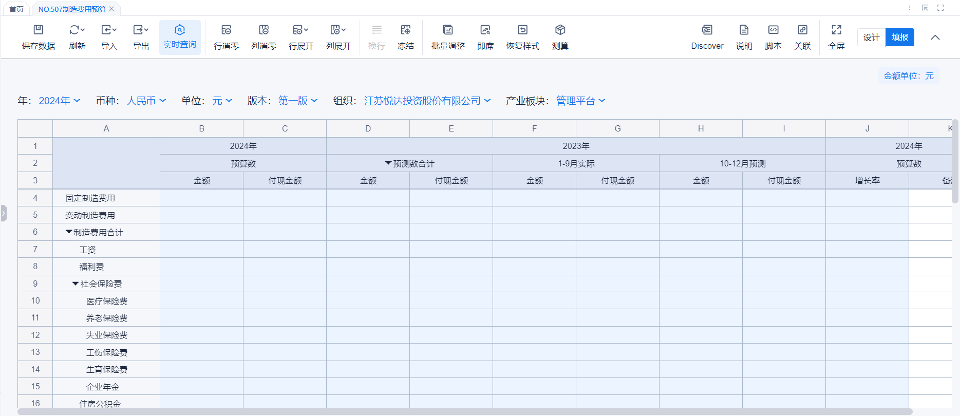 1、本表分产品类/项目类/房地产类/金融类展示年度预算模块的基础信息以及预算数,取自《主营业务收入预算》