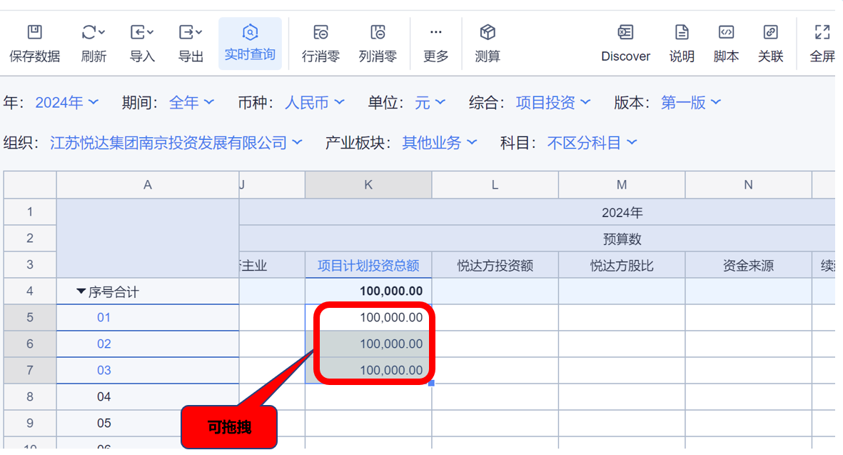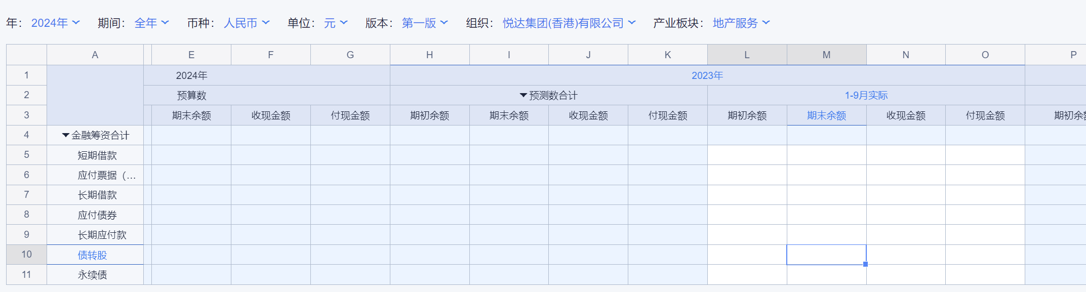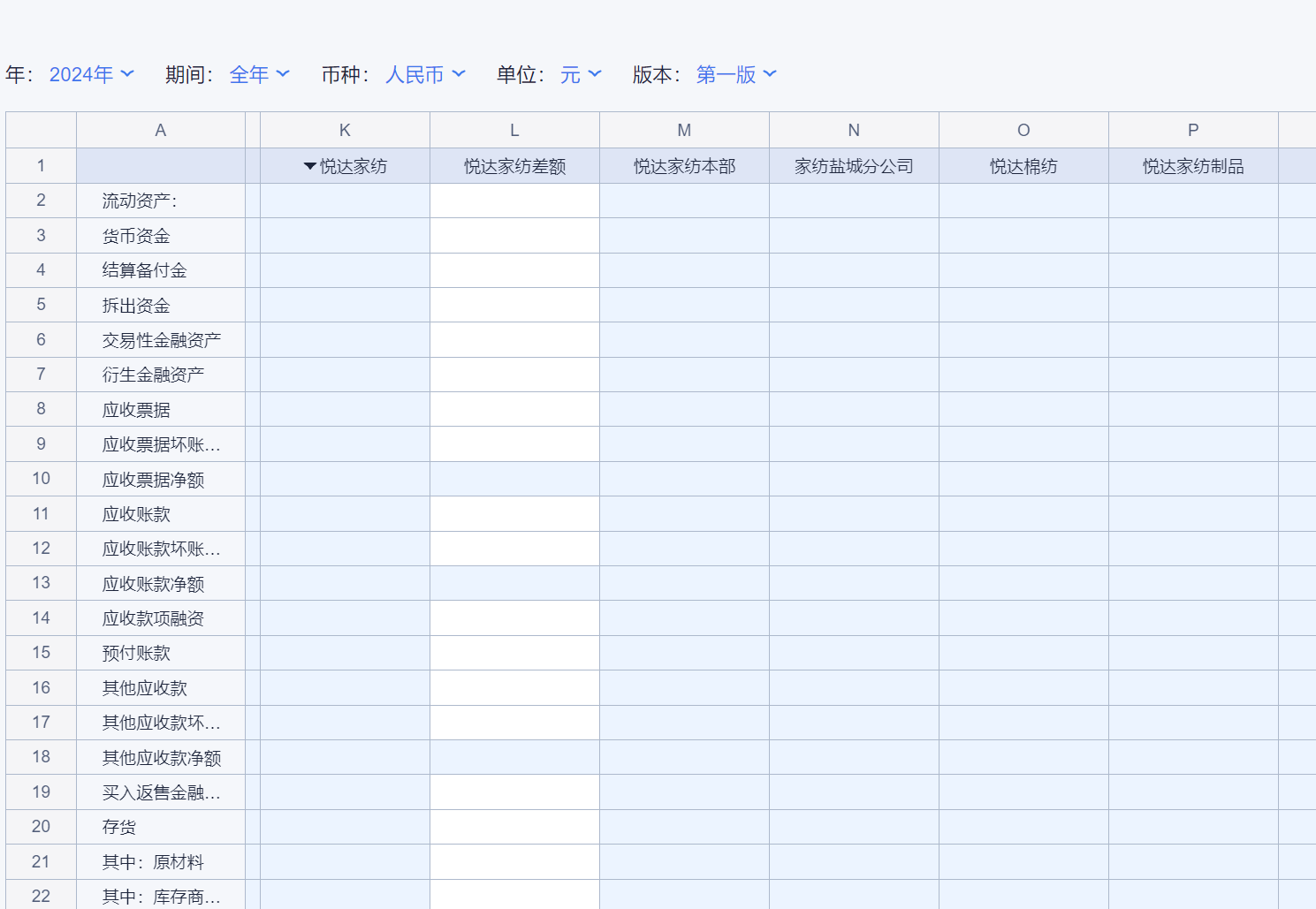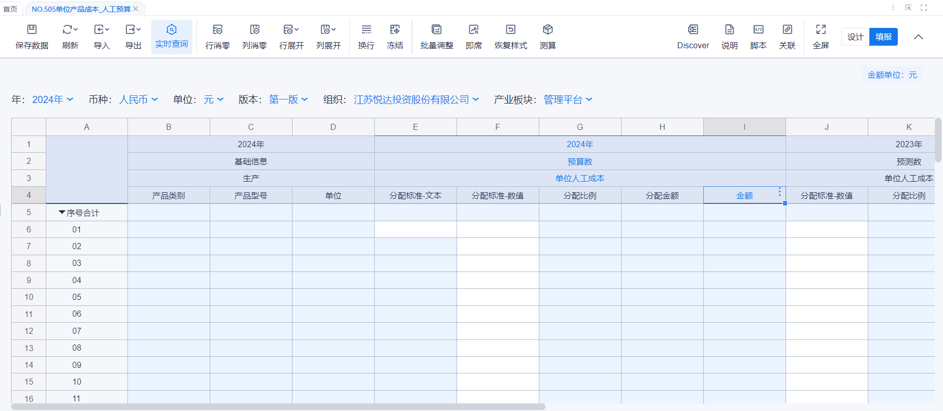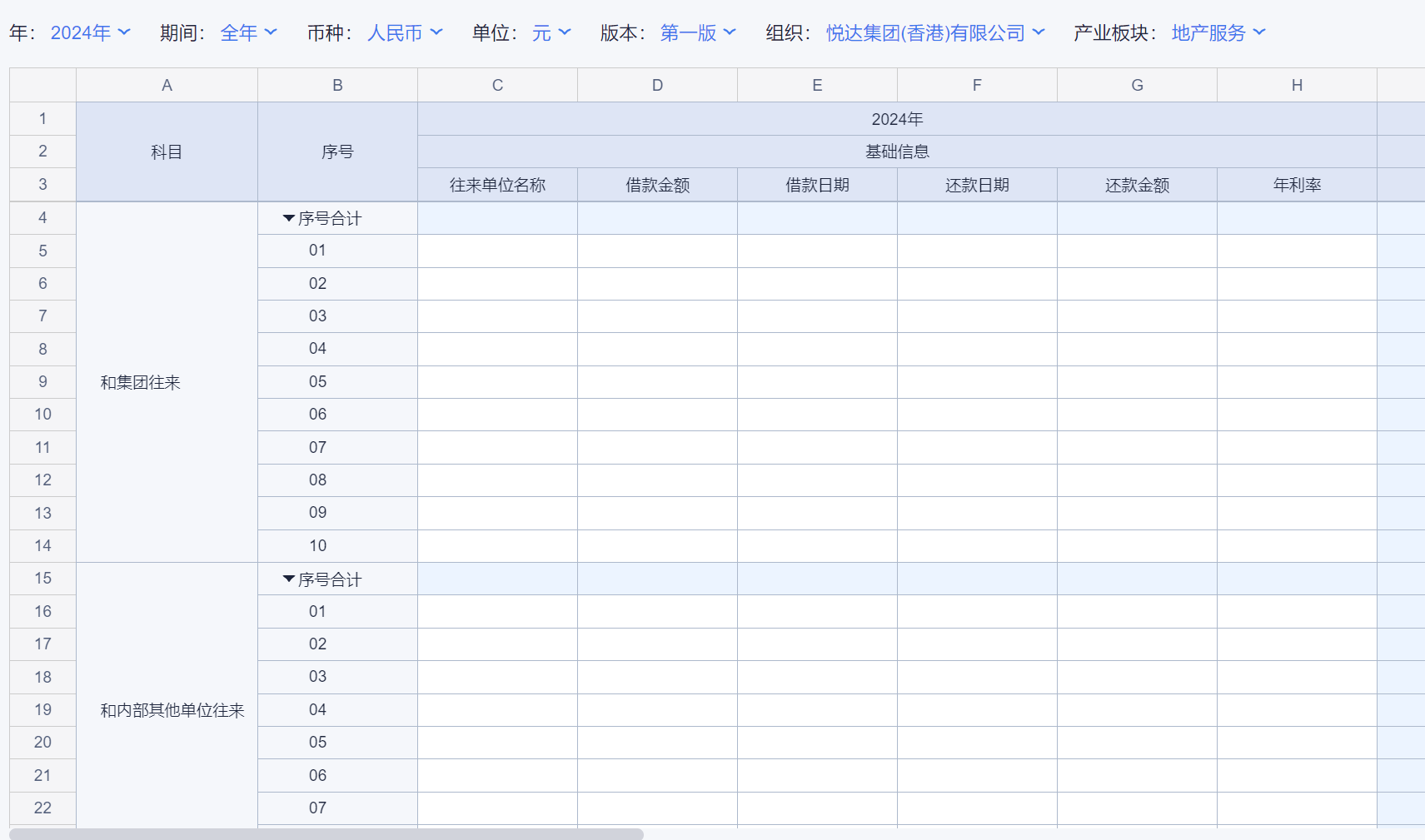 1、本表分产品类/项目类/房地产类/金融类展示年度预算模块的基础信息以及预算数,取自《主营业务收入预算》