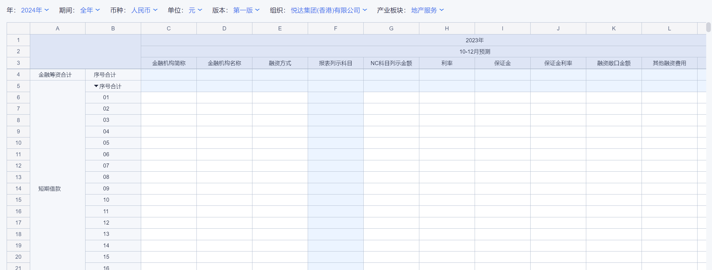 表单逻辑:本表填报预测年预测月份(如10-12月预测)发生的和外部金融机构之间产生的筹资
