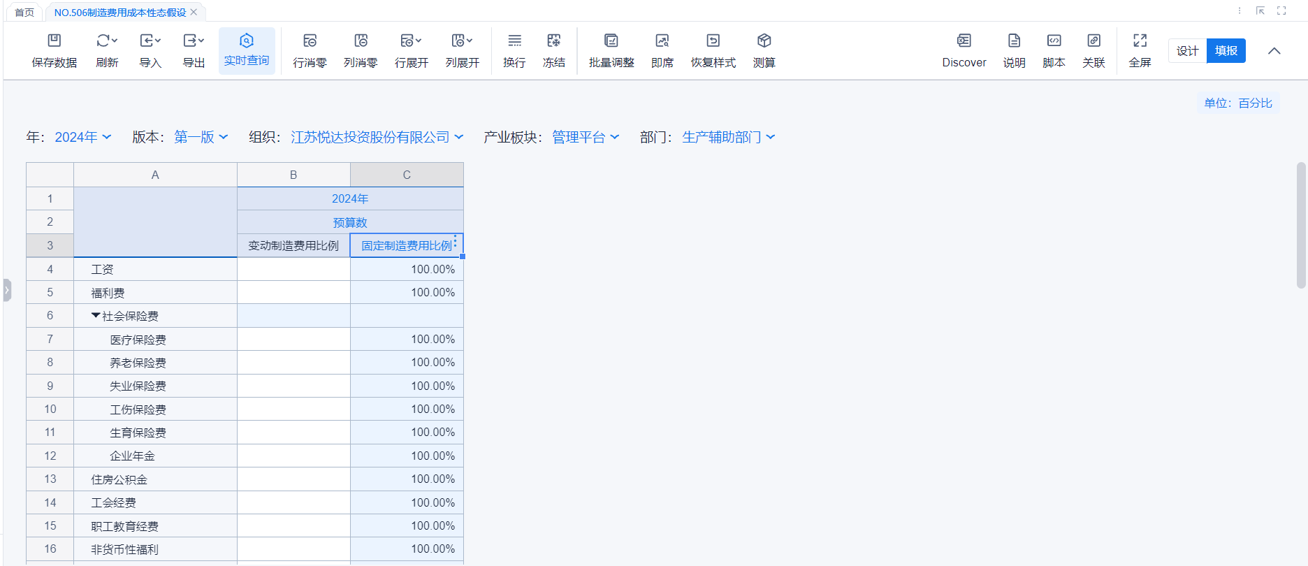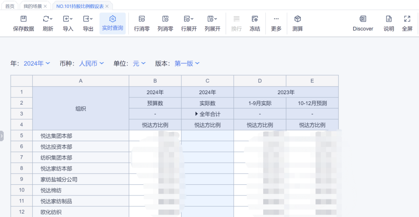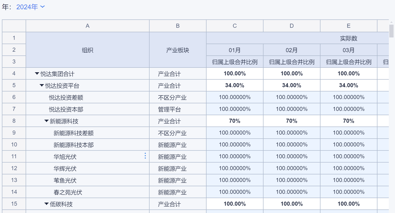 持股比例假设表(全层级实际数分月)