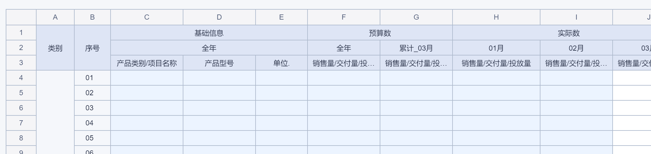 2、需填报销售量/交付量/投放量的本年分月实际数以及上年同期累计实际数