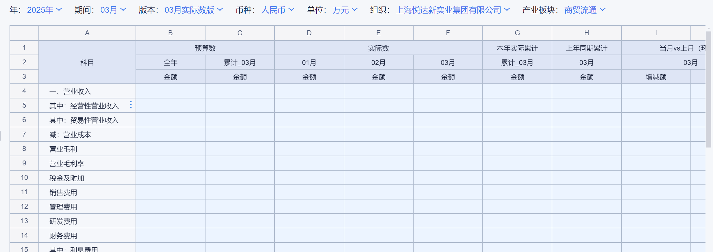 3、本年实际累计=1月到当月的实际数累计数