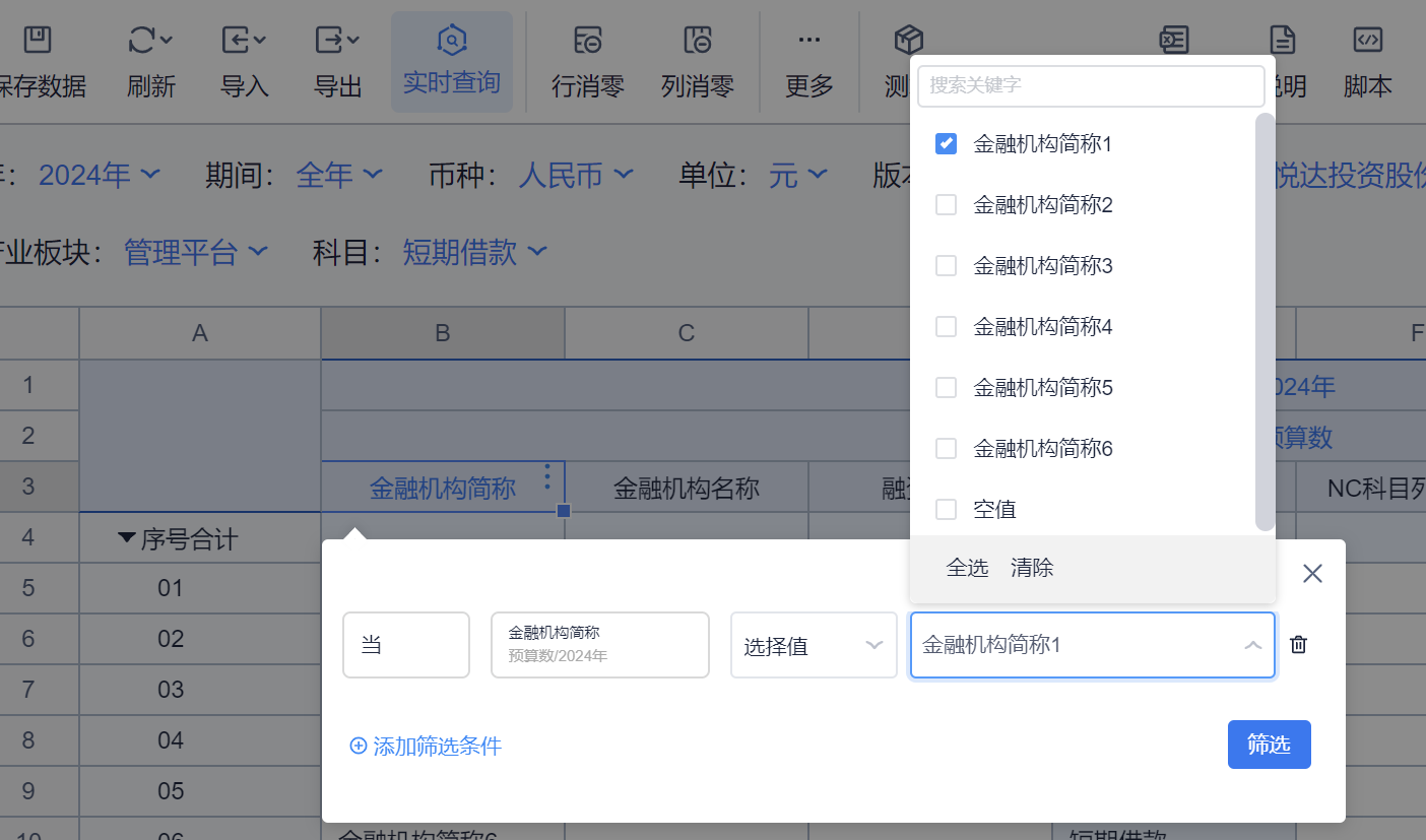2、预算年的本期增加,取自《金融筹资预算》的借款日期为预算年的【NC列示金额】合计数