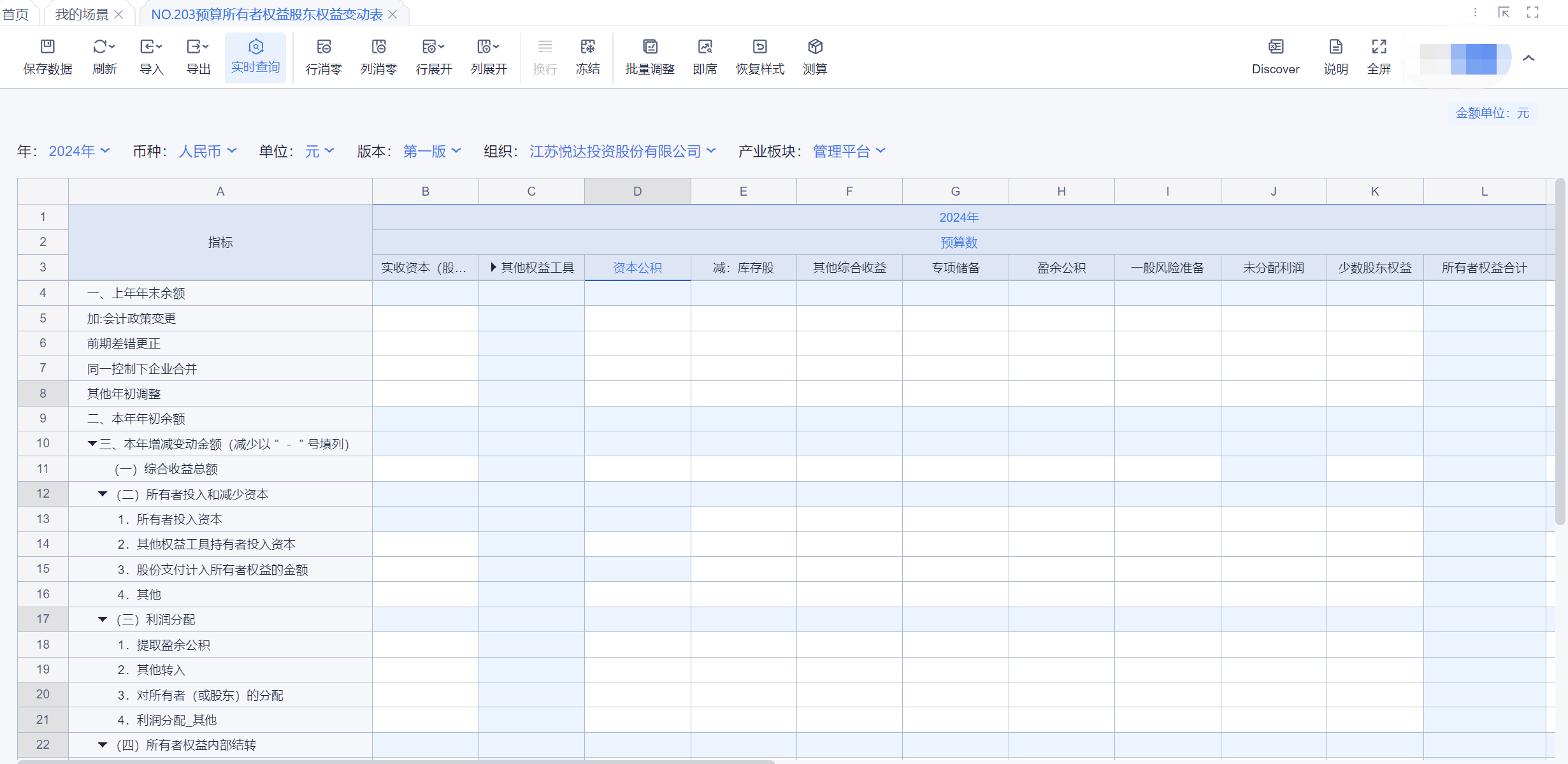 [NO.203预算所有者权益股东权益变动表 23]