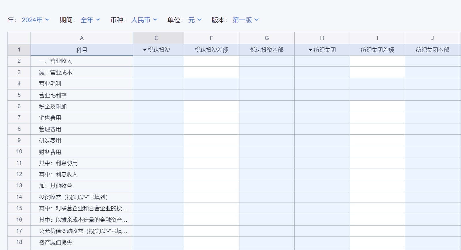 (4)归属平台净利润/归属集团净利润:逻辑同预算编制模块