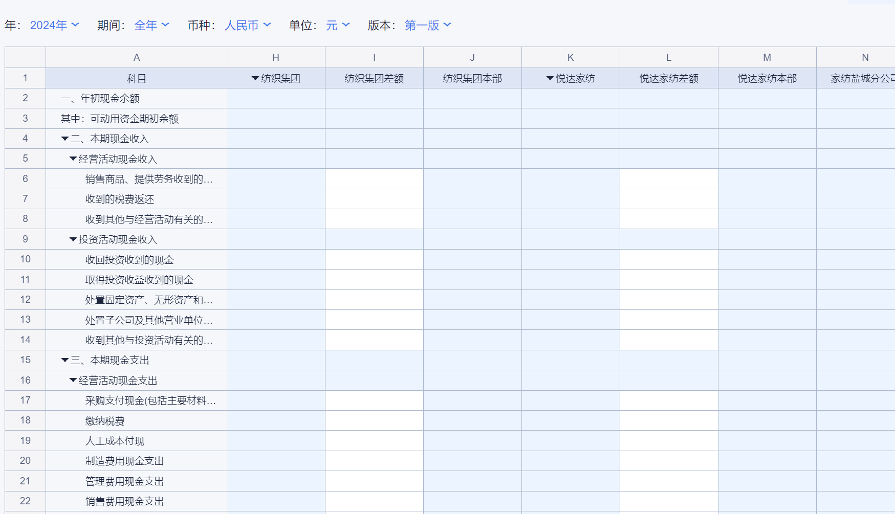 1、本表预算年的期初余额取自上一年的期末余额