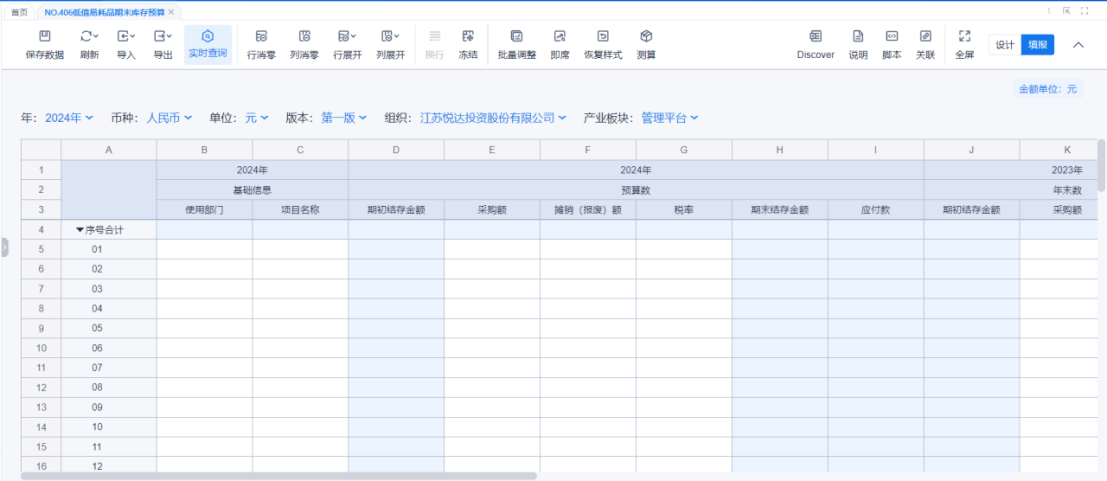1、该表中预算数据列取自报表任务"预算数据表"中对应报表的预算数据,如计算或该列无数据请及时进入报表任务"预算数据表"维护对应预算数据