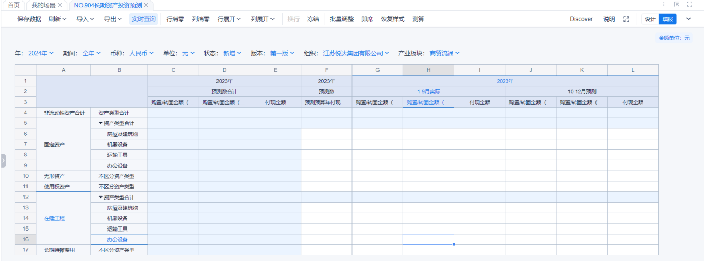 6、预测年1-9月的期初余额和期末余额和收付现金额均手工填报