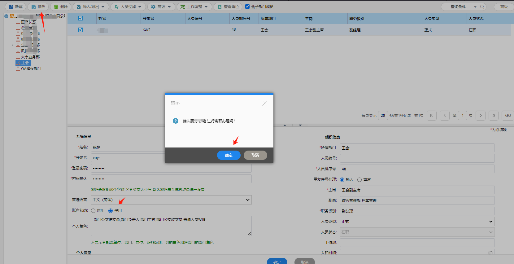 如果员工发生离职等情况,待离职交接完成后,单位管理员需第一时间将该用户的账户停用,不可将该账户更名给新同事使用,应该通过新增账号的方式单独给新同事账号,账号停用操作如下图所示: