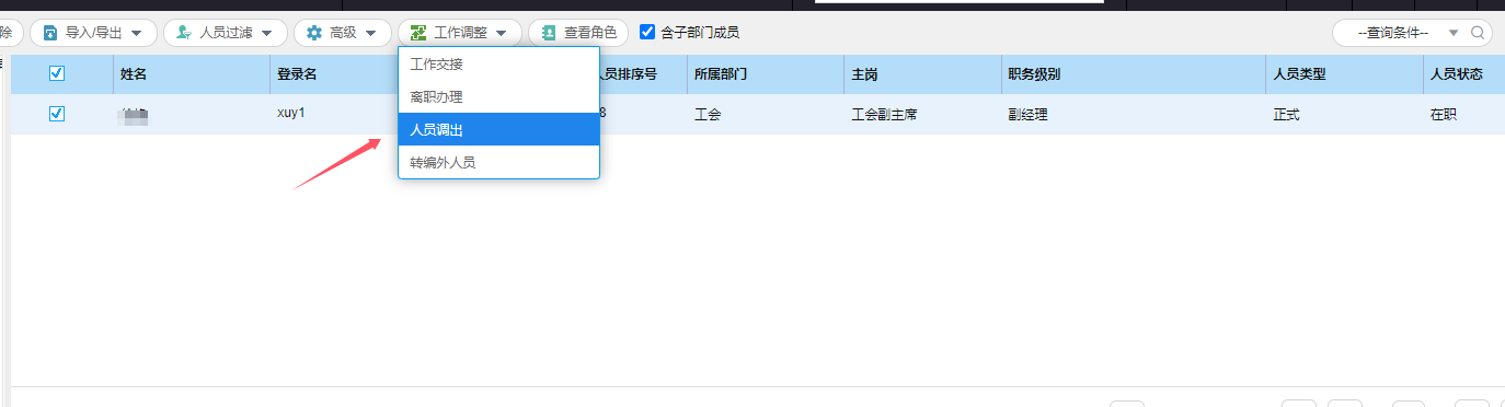 如果员工发生跨单位调动情况,单位管理员收到人员调动红头文件后,即可在人员信息管理路径下点击人员调出按钮即可,选择正确的调入单位,待对方单位管理员启用调入账号即可。