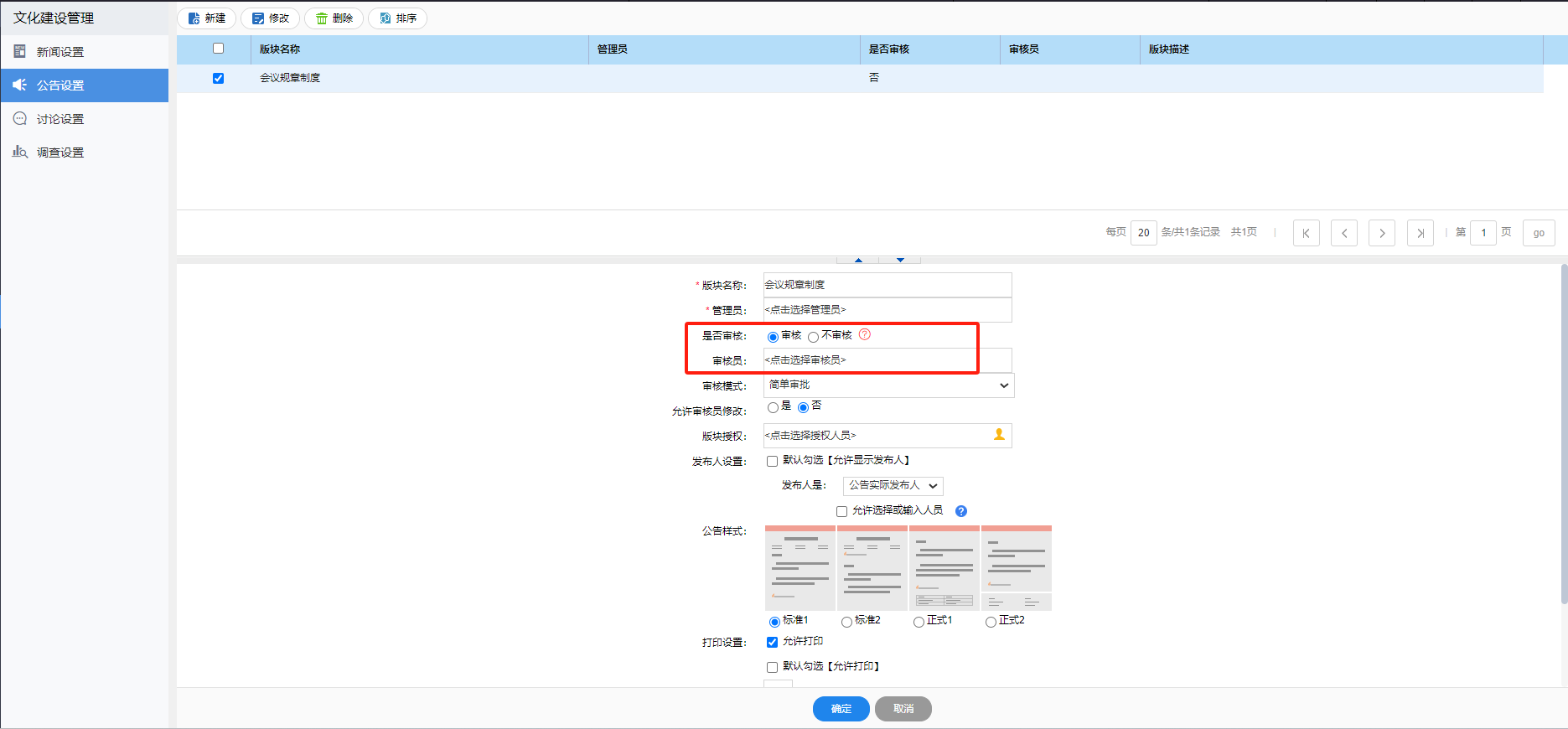 公告管理是帮助单位内部发布公告,比如放假公告,排班公告等。再正式使用前需要指定公告板块管理员,及发布公告是否需要审批,设置完成后相关业务权限人员即可发布公告。