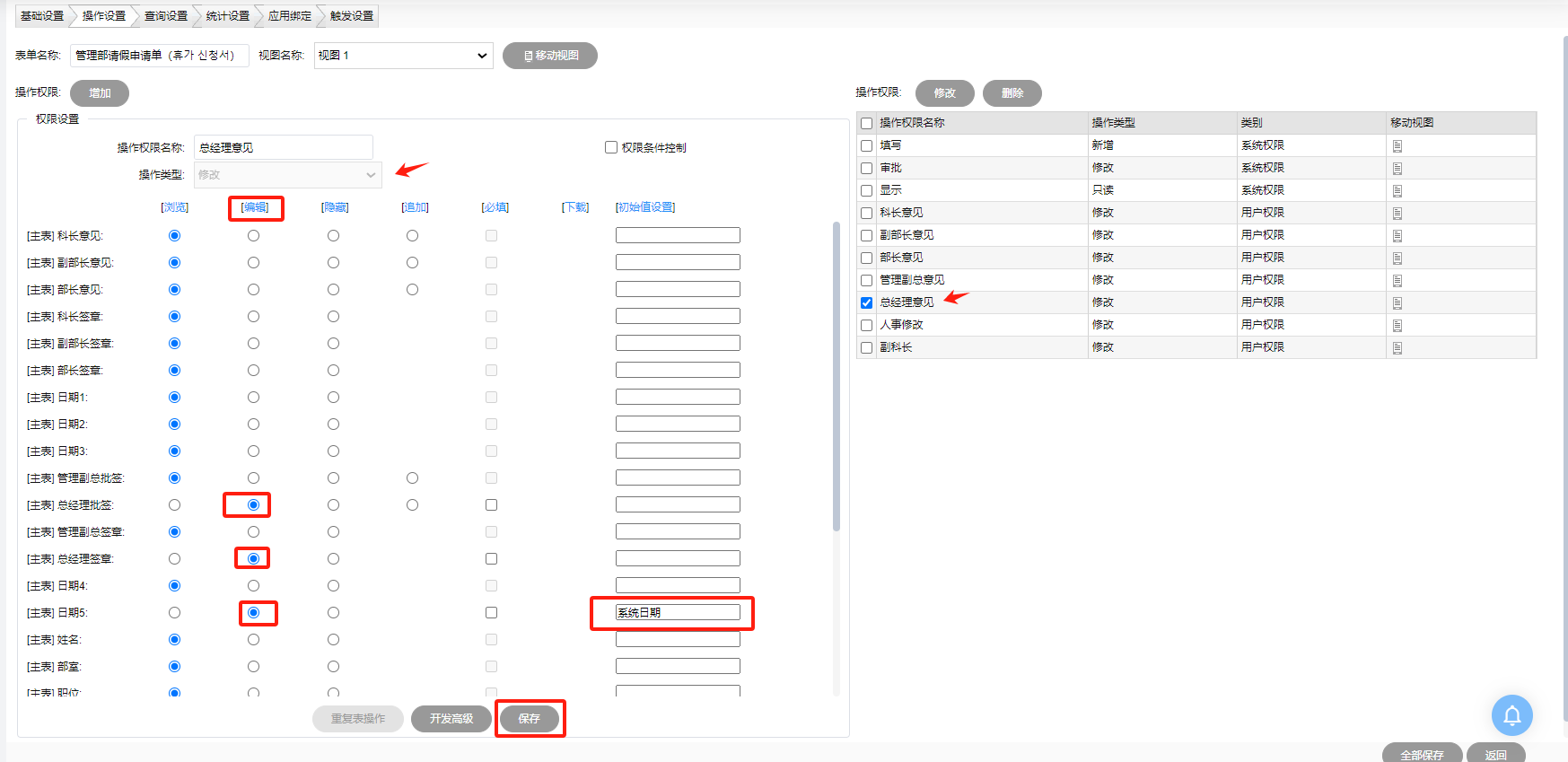 此步骤用于规定,每个审批节点,对应的表单中数据权限,如总经理意见这个节