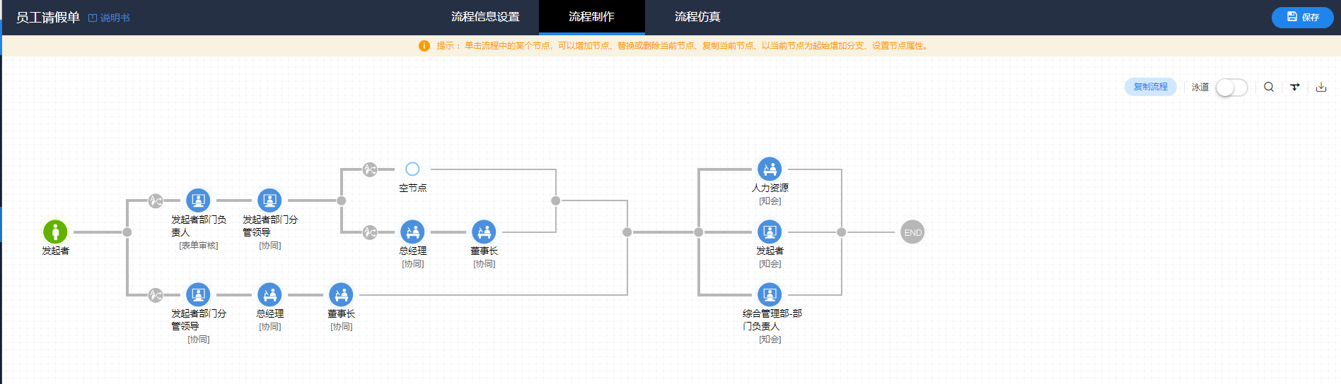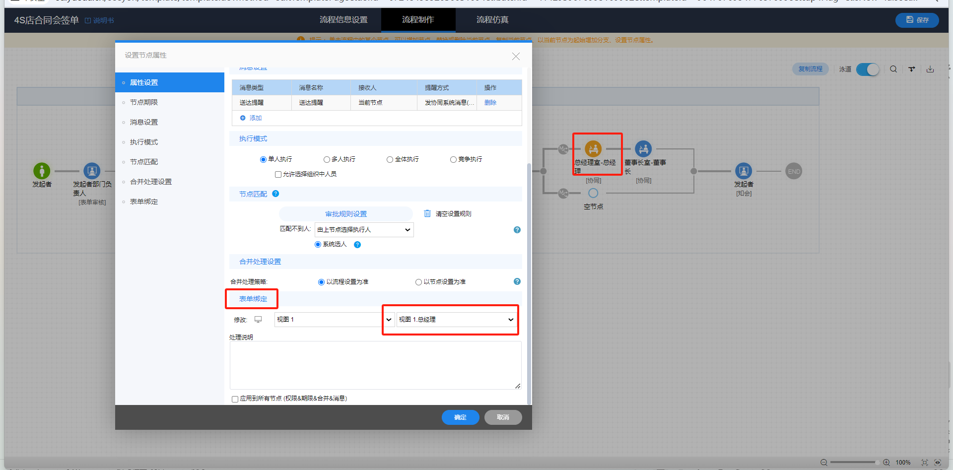 编辑流程时,可以选择并发、串发等形式,并发需要设置好分支判断条件,并维护好各个节点的节点权限。