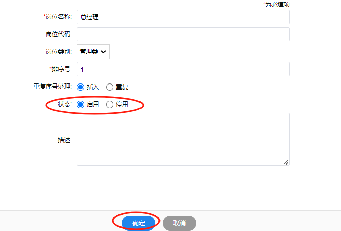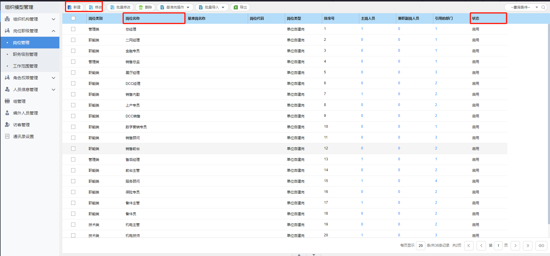 本功能为管理本单位的岗位信息,新入职的同事如没有此岗位需要在此路径下新增岗位,也可进行岗位的更名和停用操作。