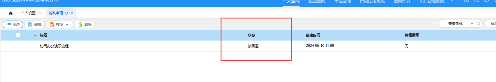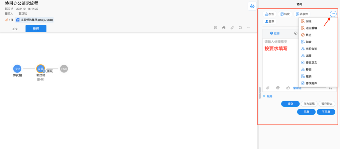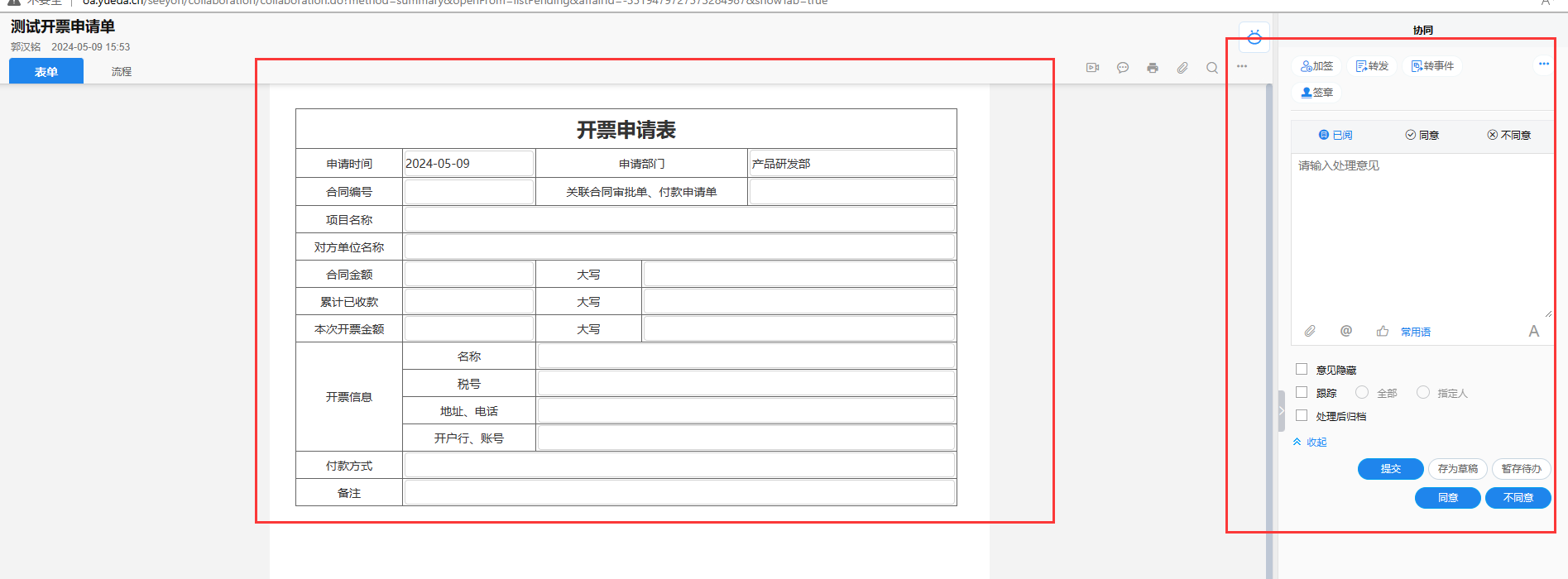 【步骤三】点击同意后流程自动发送给下一个人员进行协同/审批