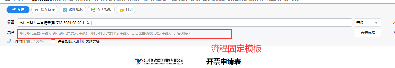 如遇到有财务需要审批/知会的,需要在流程中增加财务的节点: