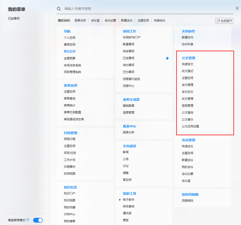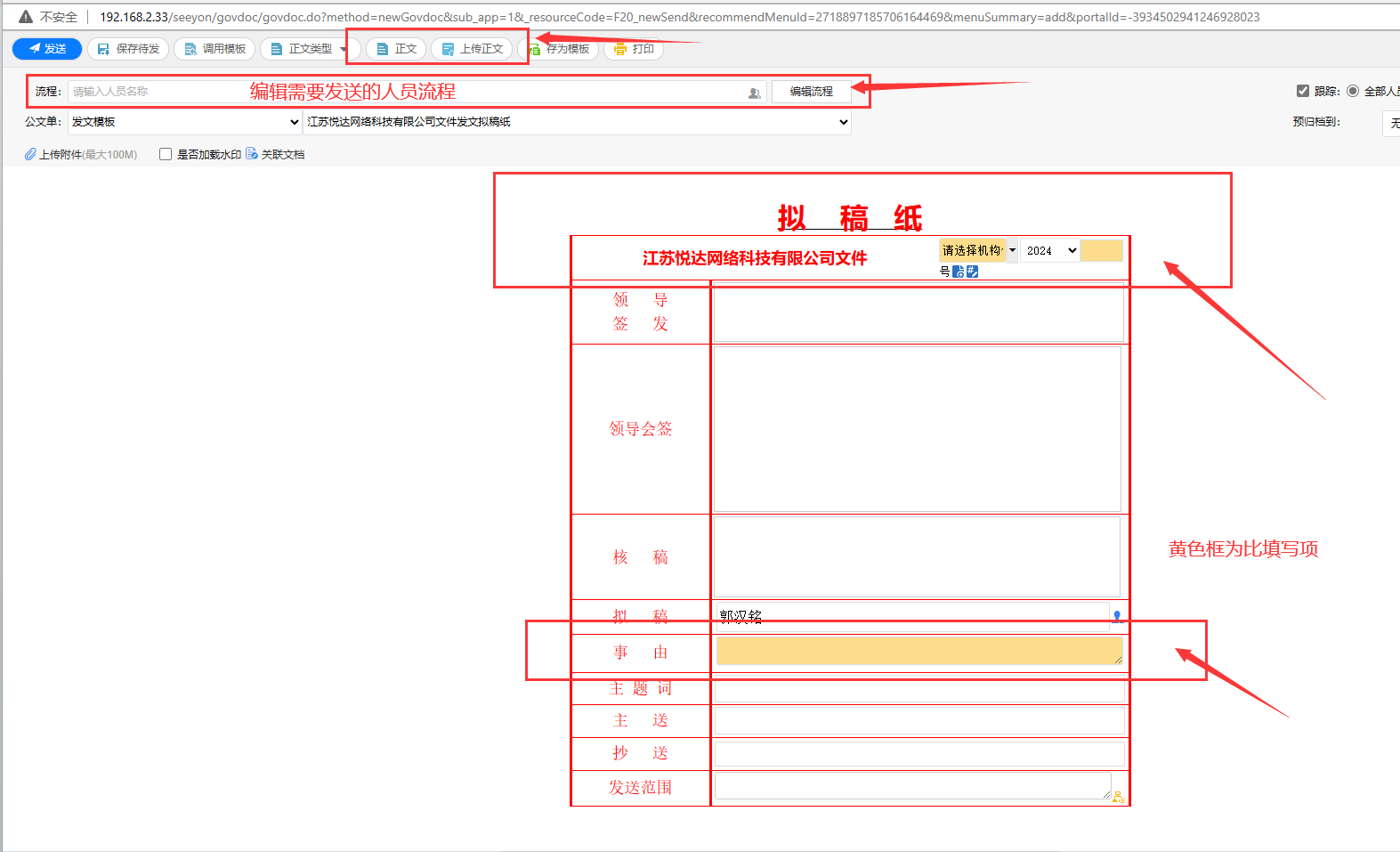 快速发文人员:拥有新建事项、表单流程发起等权限