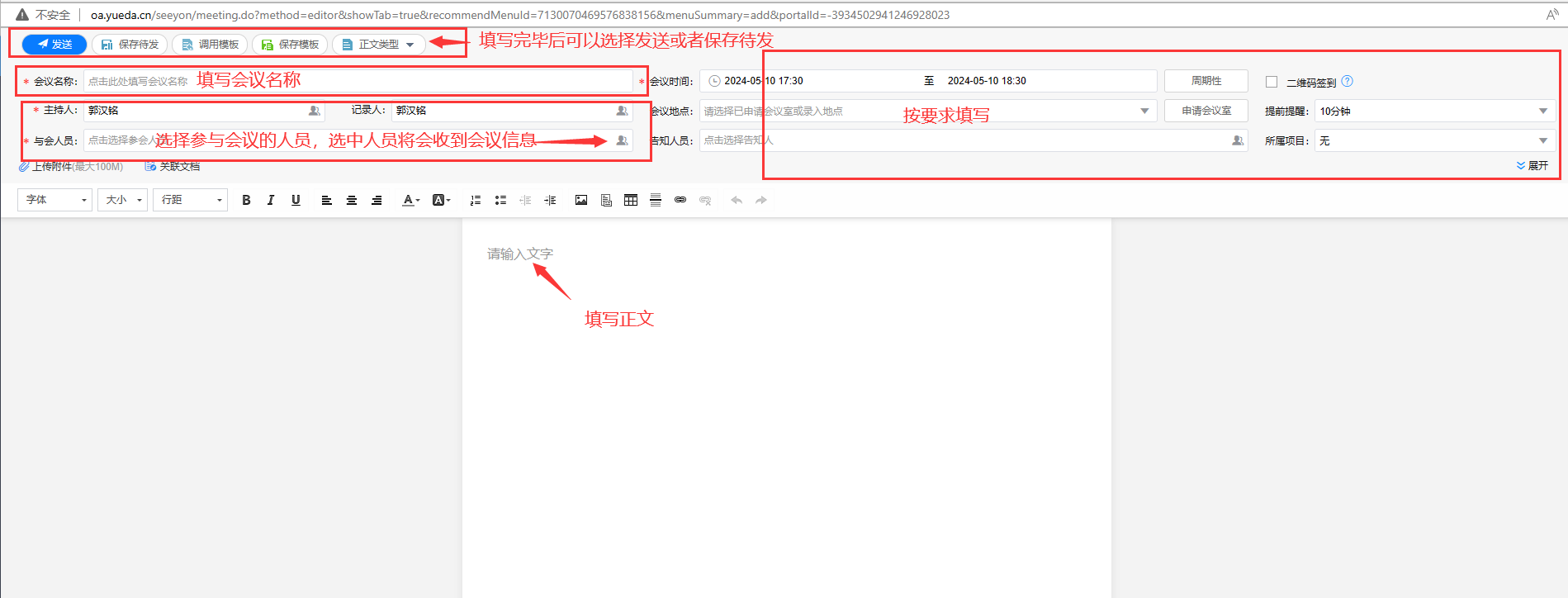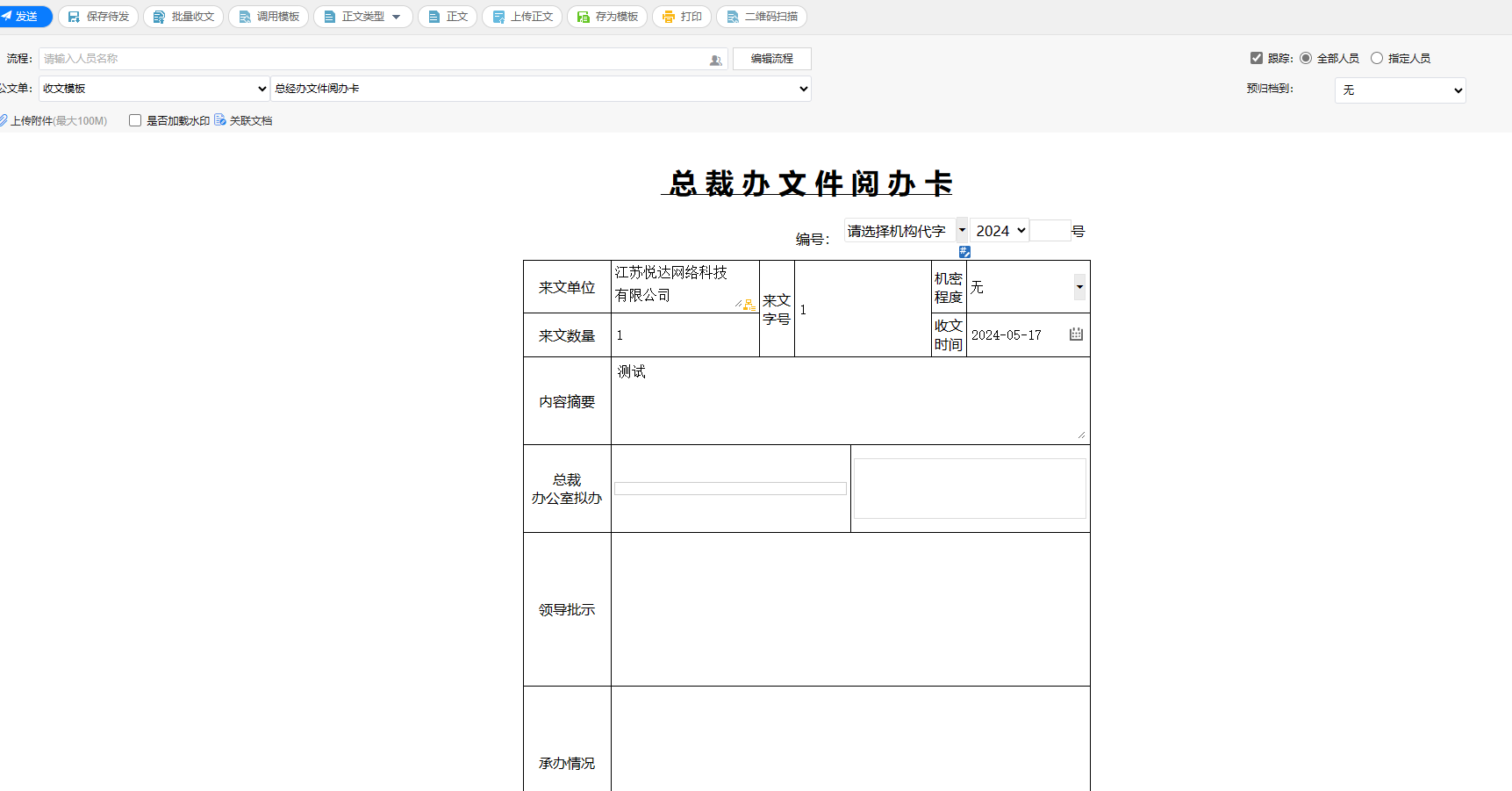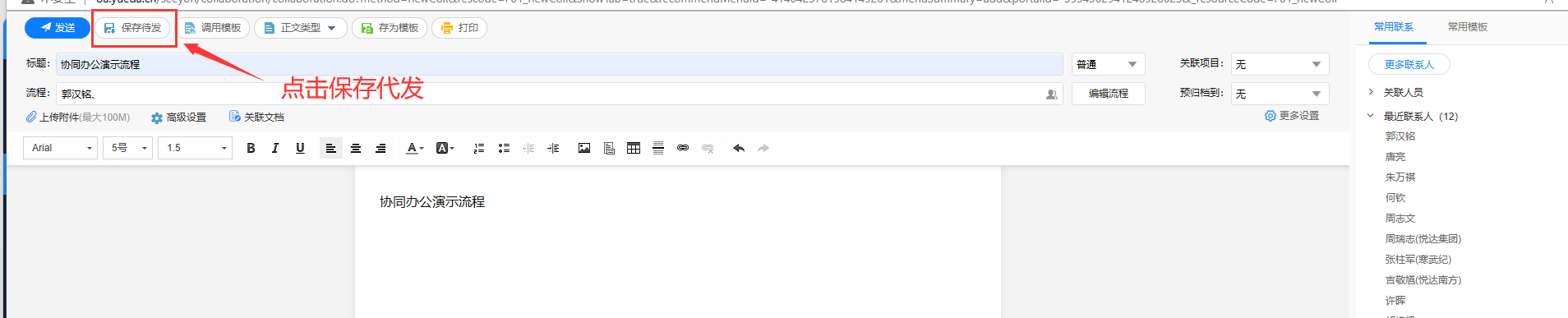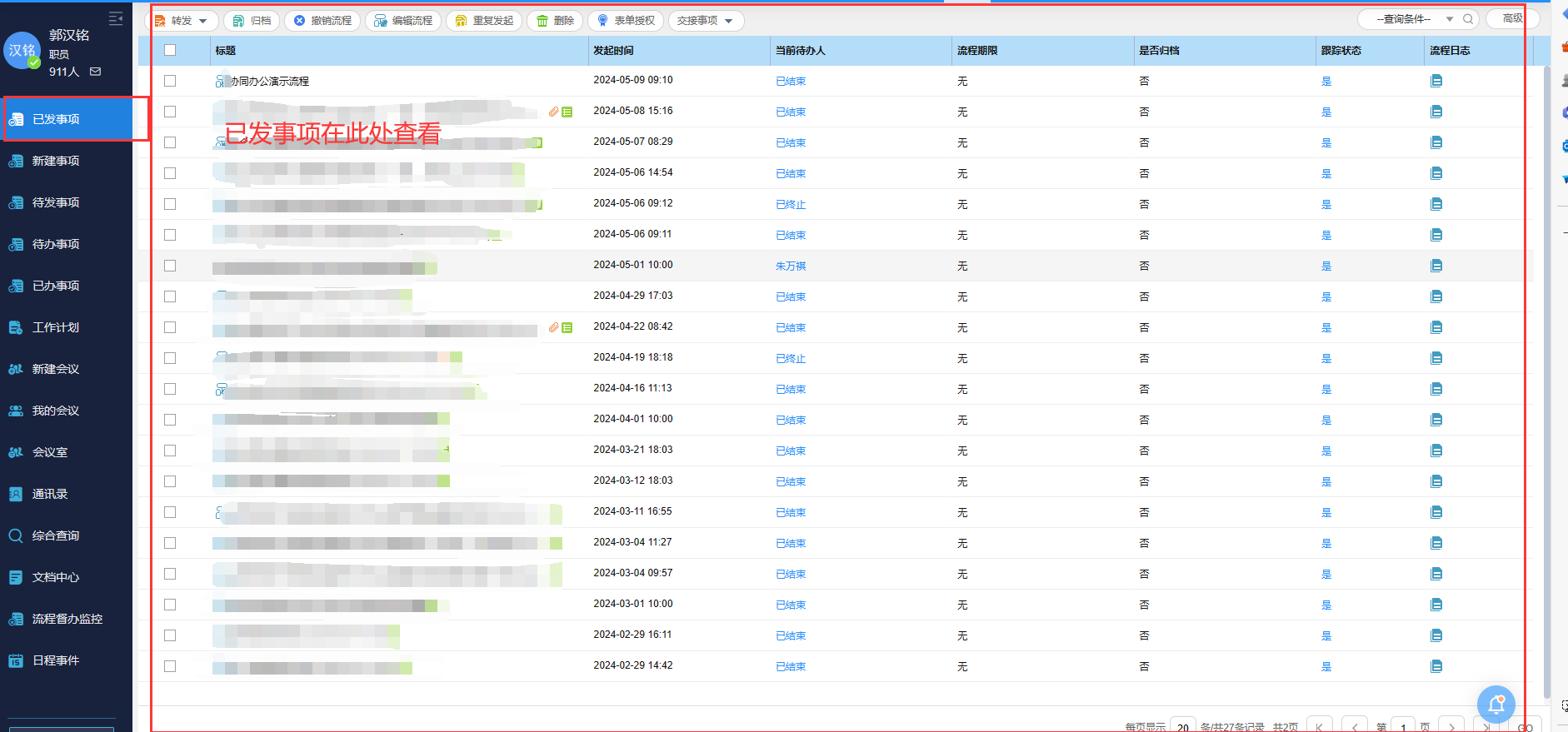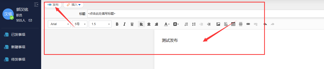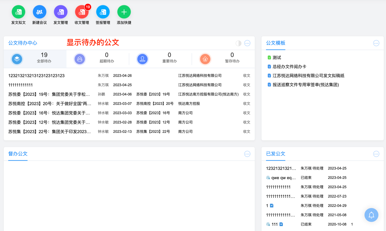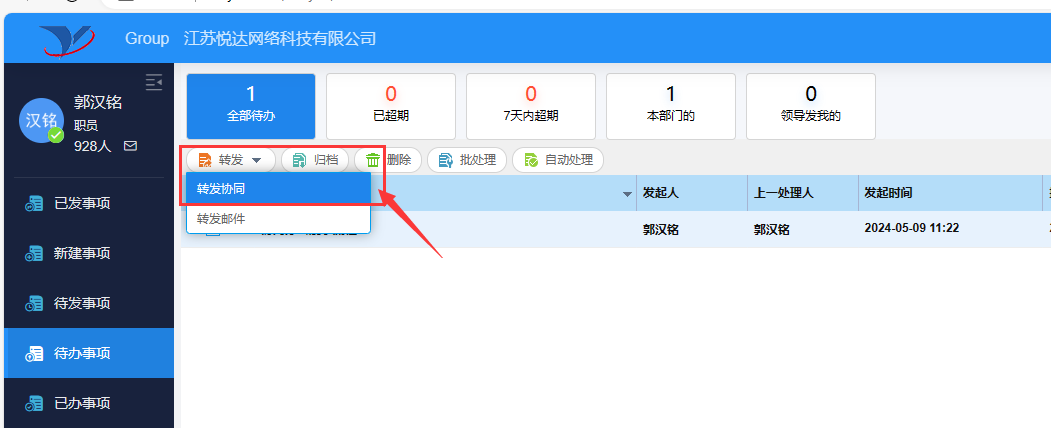 ·**新建事项:**建立新的事项,可以进行日常的事项发送,选中需要发送或者审批的人员时,可以在OA系统上进行查看和审批,相当于将现实中的流程汇报在OA上完成,提高了办公效率省去纸张的层级审批。