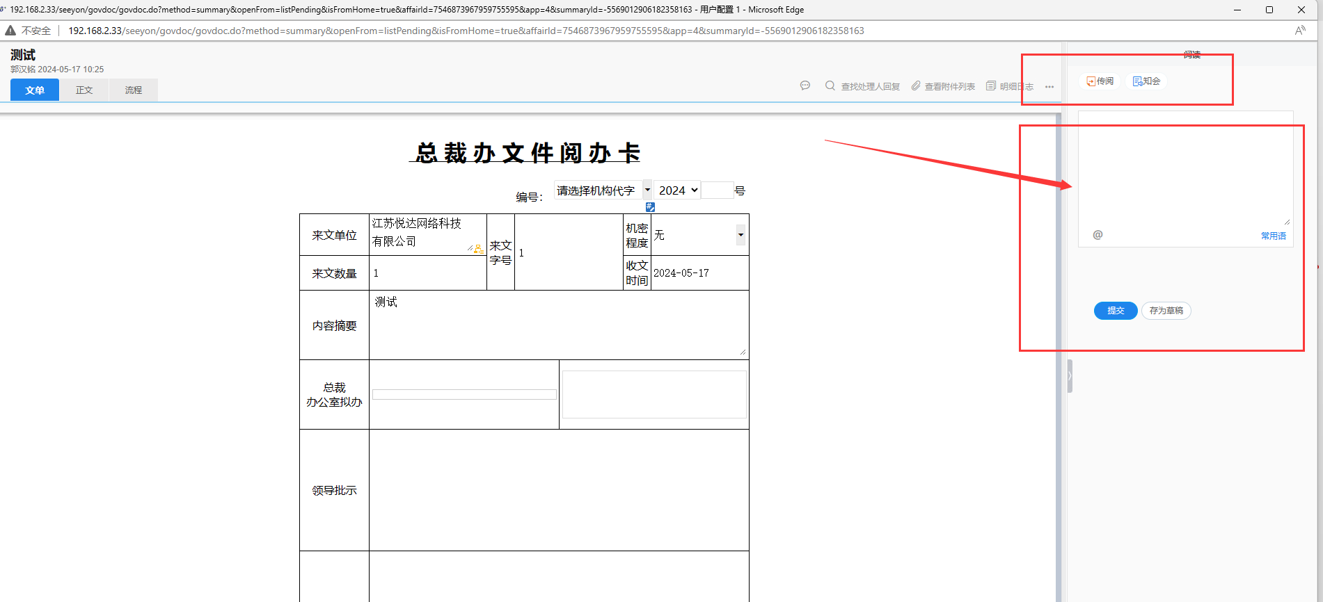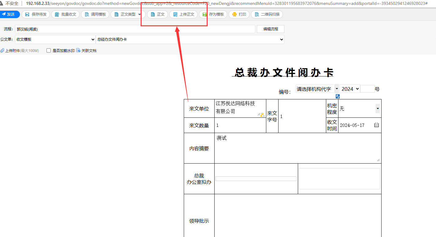【步骤四】正文内容:如果正文,可以在正文类型里选择合适的格式,此页面具有网页在线编辑office的功能,如没有就不用填写。如果有附件记得上传附件,如有关联的文档则进行文档关联。点击关联文档后进行文档的选择,以下为选择文档框。