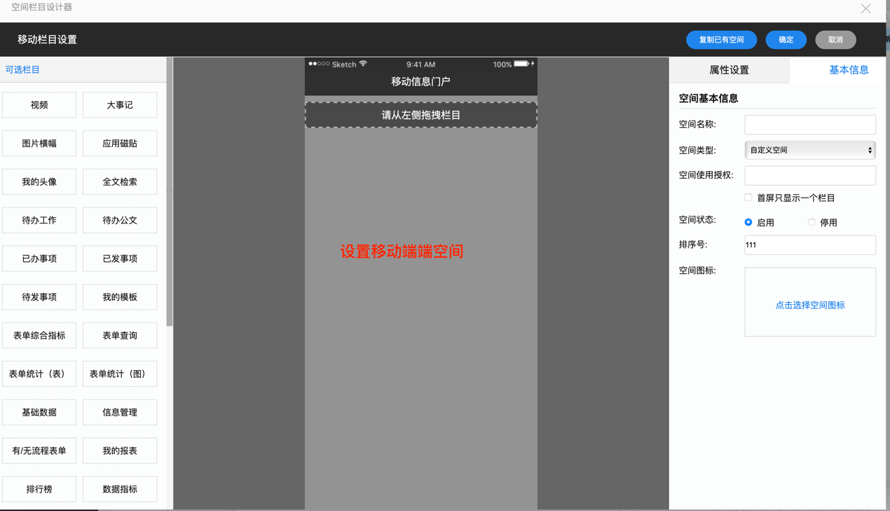 【个人门户设置】根据每个人的操作习惯不同,OA系统提供给我们自由设置装扮空间的权利,在此我们可以设置处适合自己的工作页面,提高我们日常的工作效率。