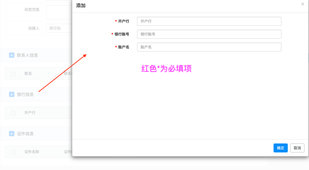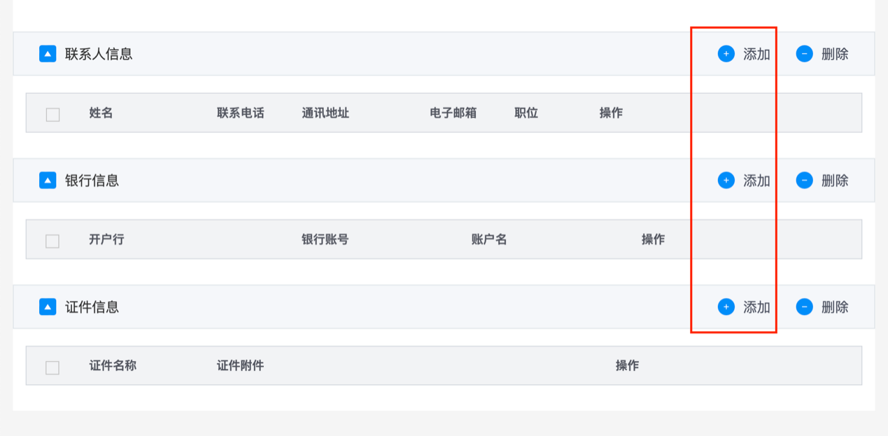 【步骤三】讲对方的联系人、银行、证件信息,点击添加进行信息的填写。