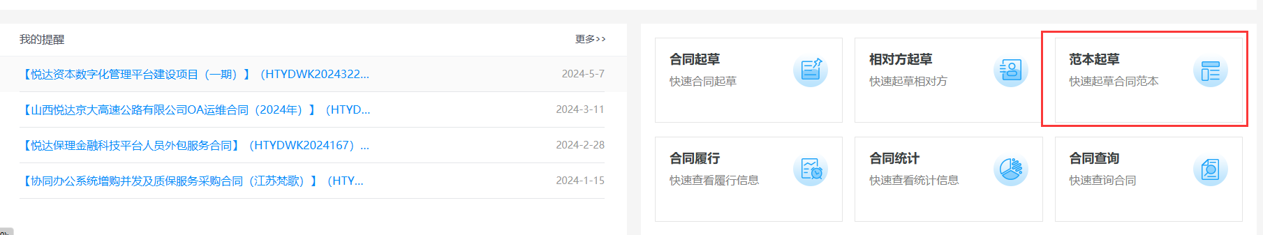 【步骤二】点击需要起草的合同,进入合同起草的界面。