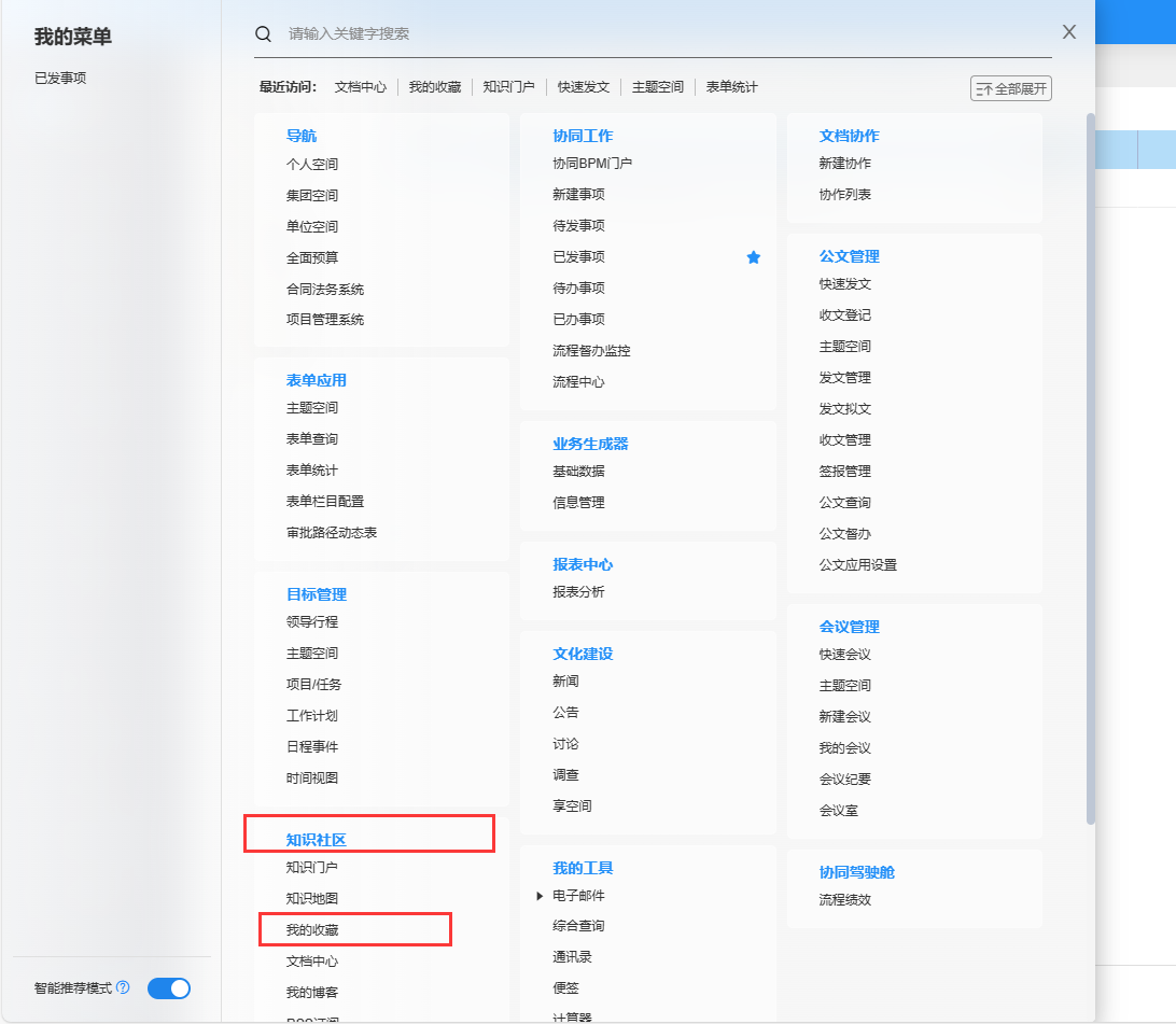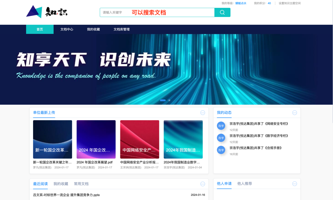 知识门户包含了很多的知识内容,在里面我们可以发布自己分享的文档,也可以查看别人共享的文档,根据自己的需求进行知识的搜索。将自己需要的文档进行收藏。