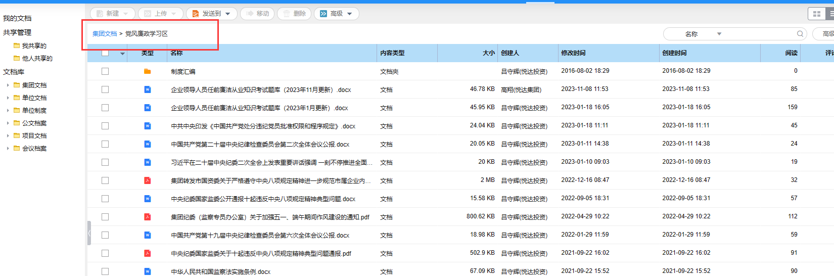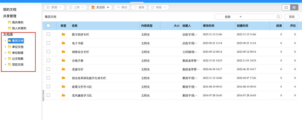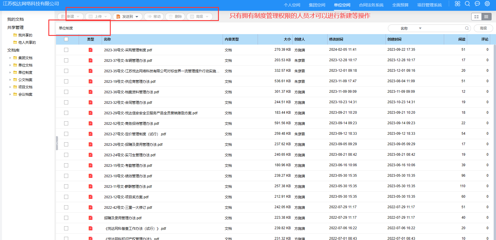 集团人员拥有档案管理权限的人员可以再次进行文件的新建。