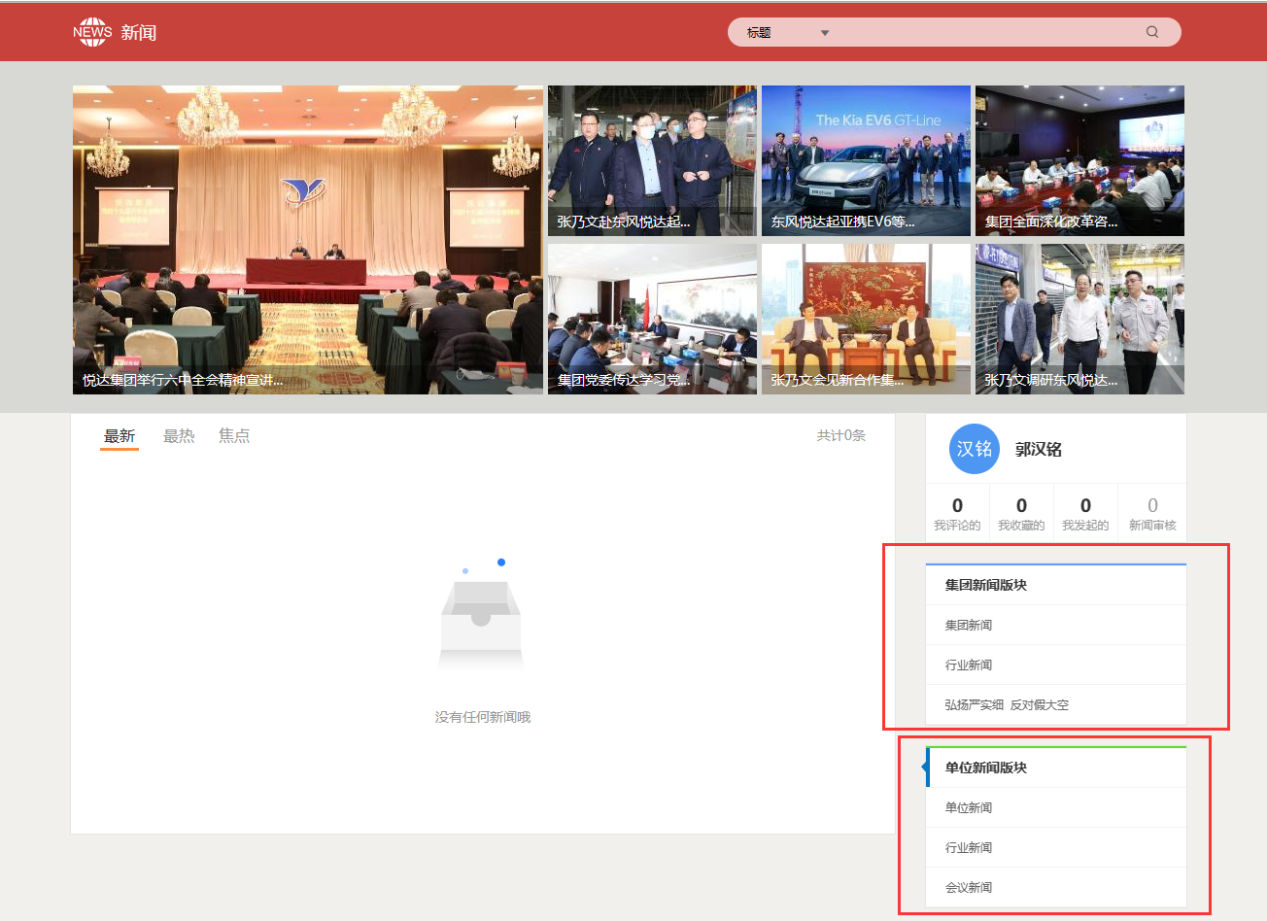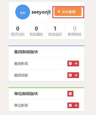 新闻发布,集团新闻,单位新闻等各新闻版块,都是通过授权相应的人员进行维护,新闻发布人通过+新建新闻