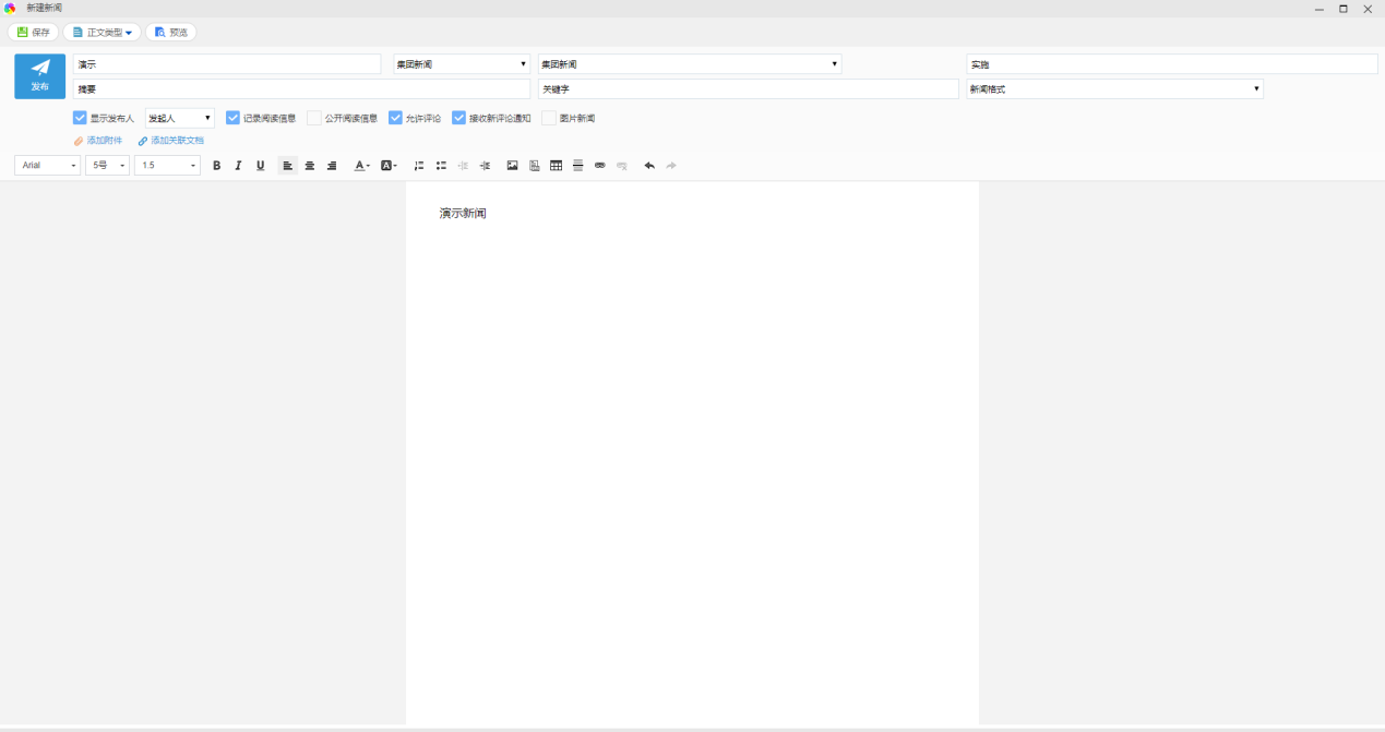 发布的时候填写标题,内容主题,概要等信息,正文的内容可以通过正文类型切换进行本地上传,也可以直接进行编辑,填写结束后进行发送