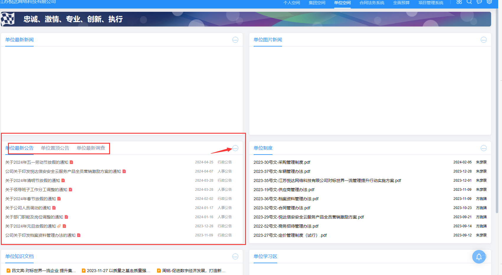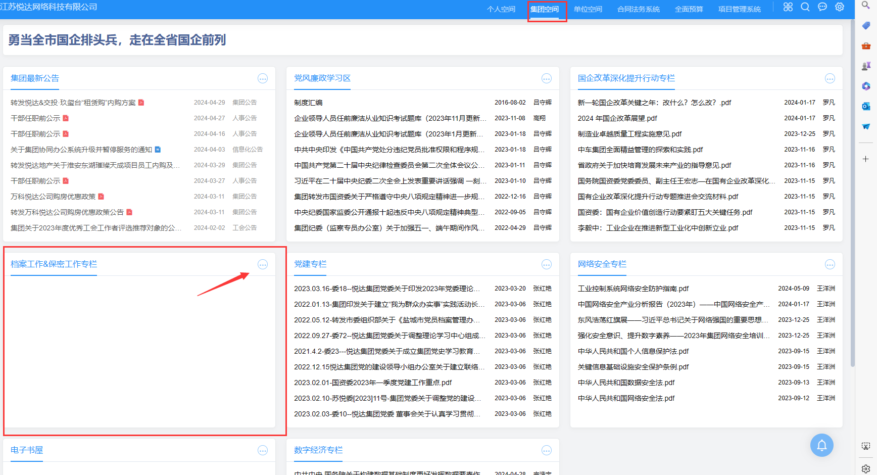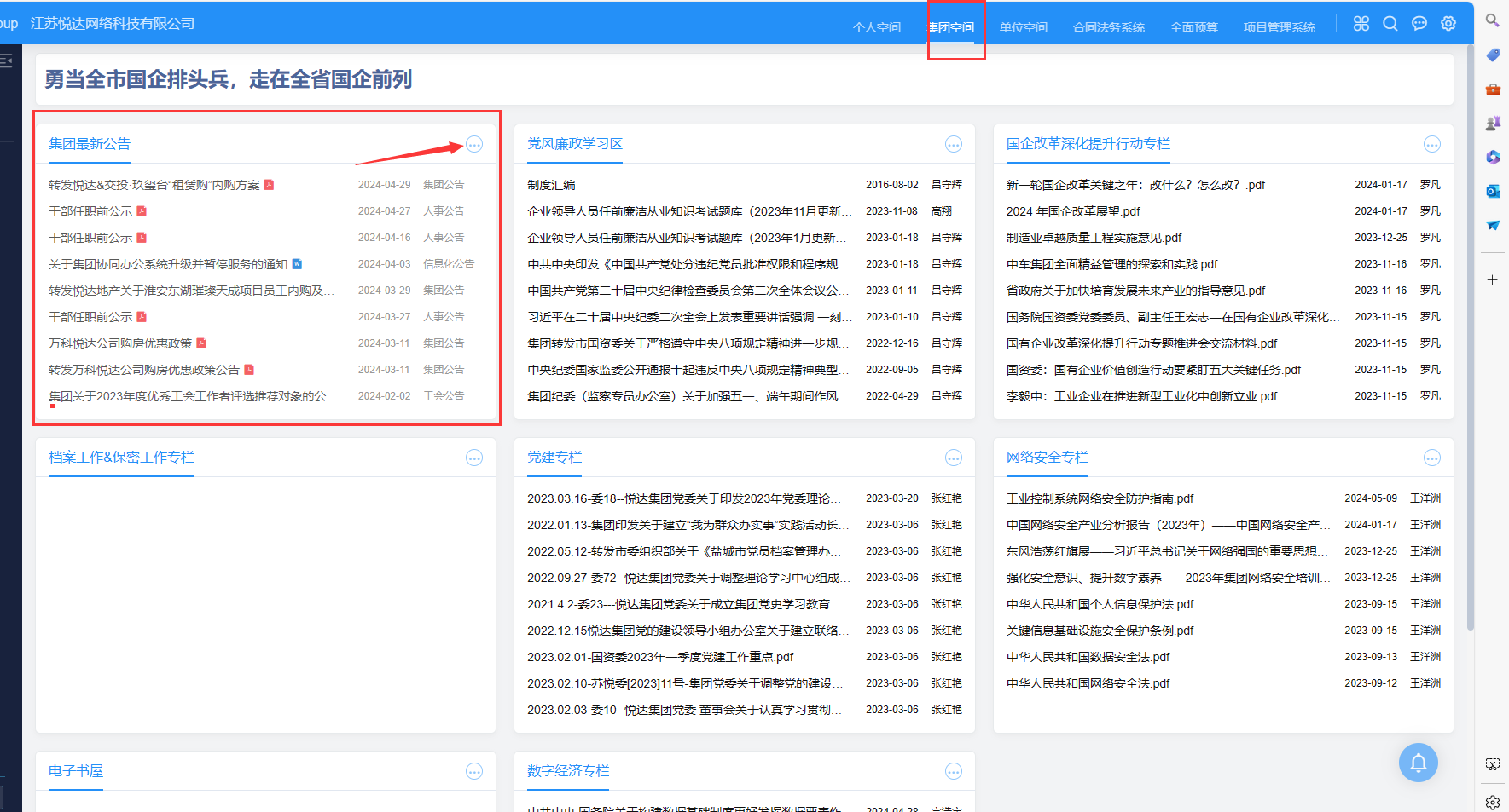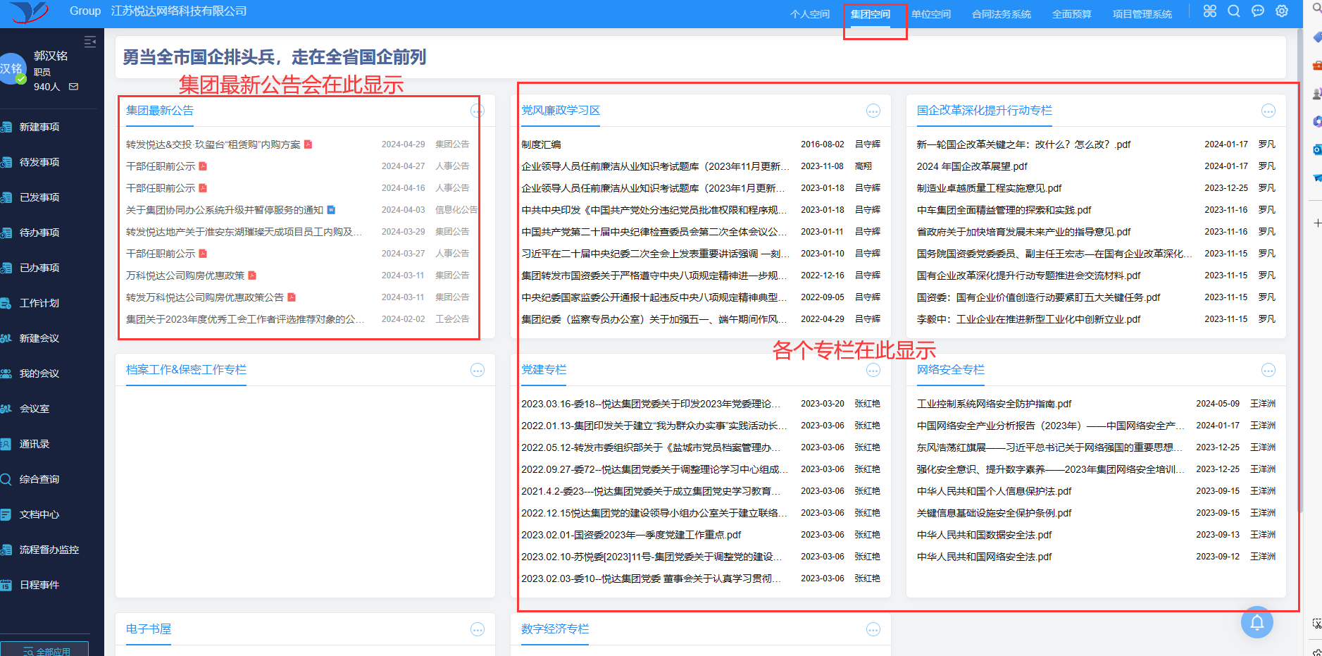 【集团空间】集团的最新公告,集团的各个专栏在此显示