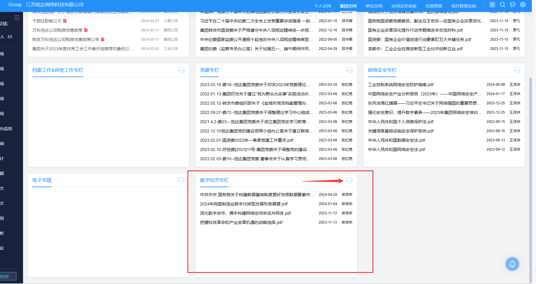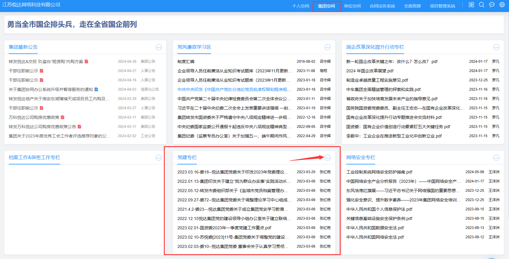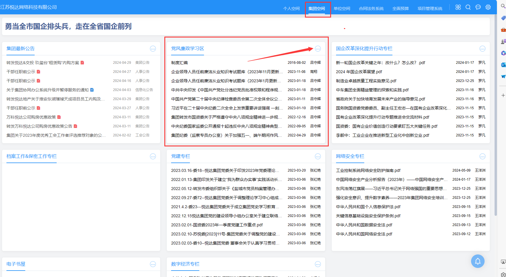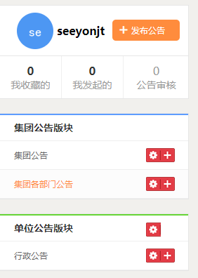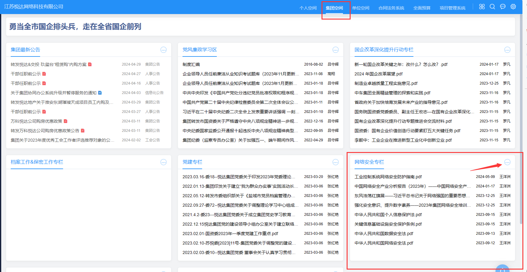 【集团空间】集团的最新公告,集团的各个专栏在此显示