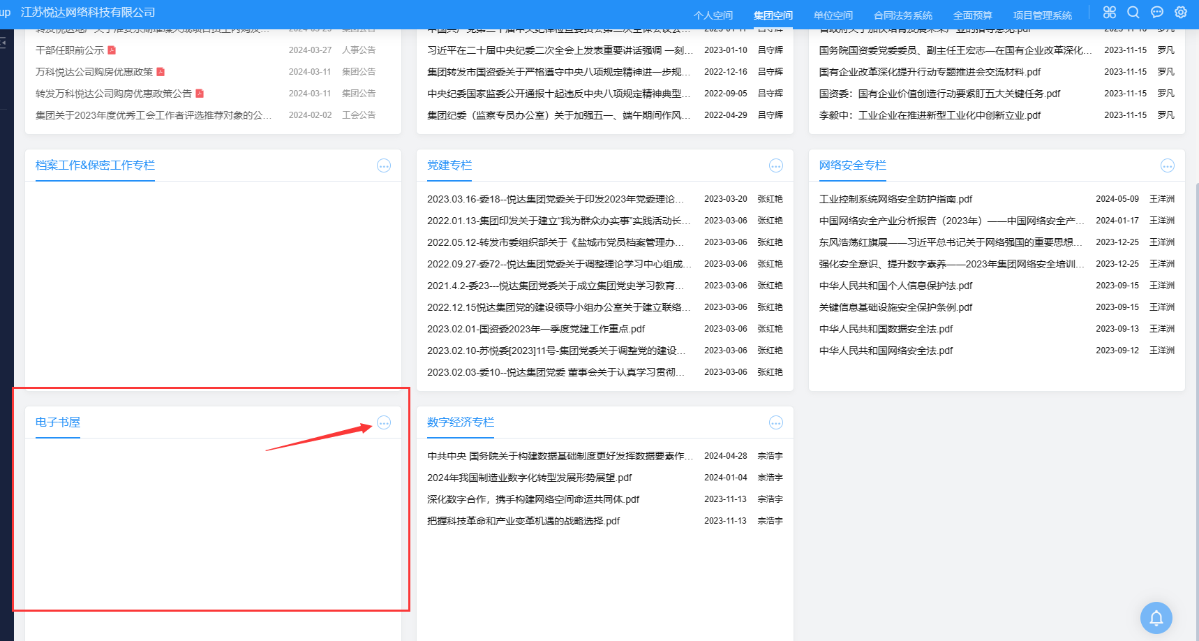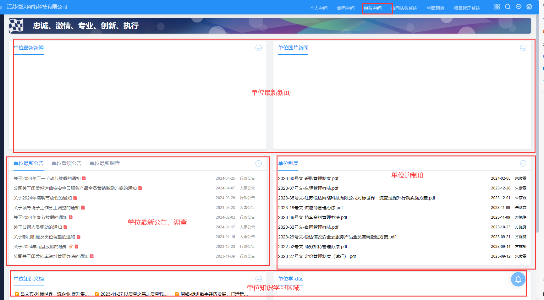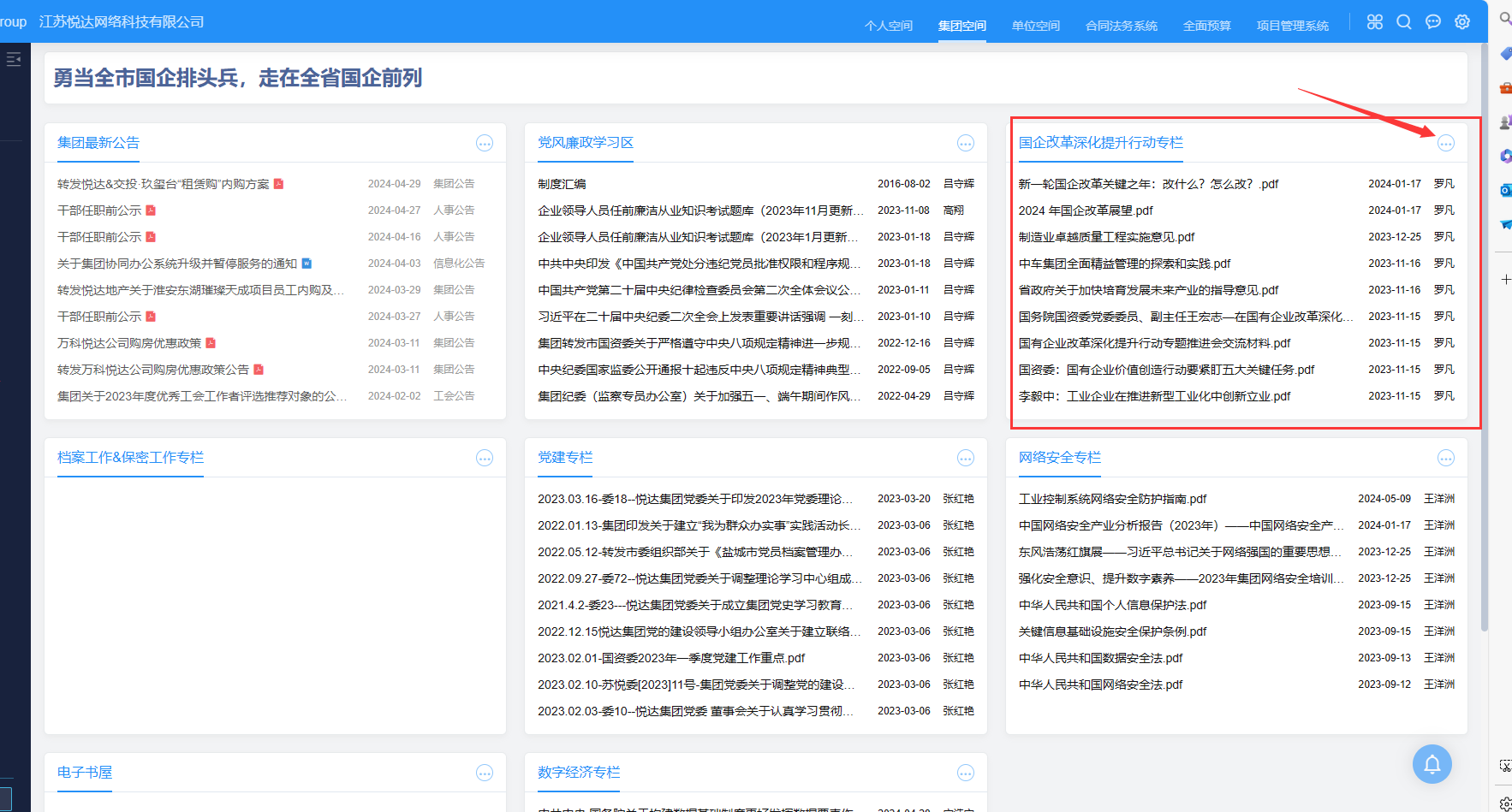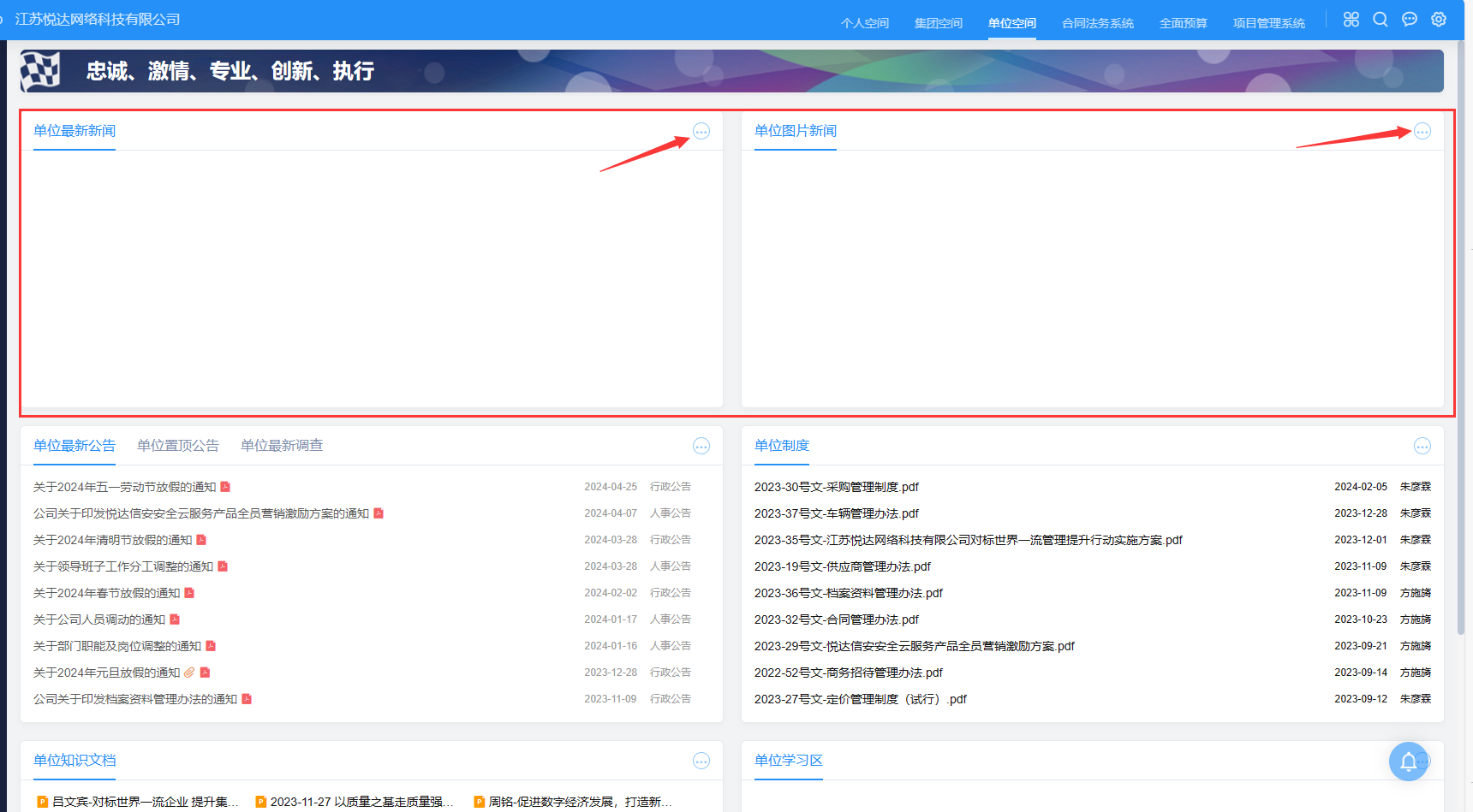 【集团空间】集团的最新公告,集团的各个专栏在此显示