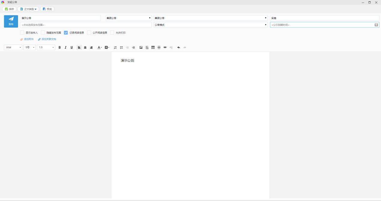 公告发布同样是通过授权给对应的人才有权限进行公告的发布,公告跟新闻的差别主要就是新闻是不可以选择范围的,公告可以选择对应的的公示范围。