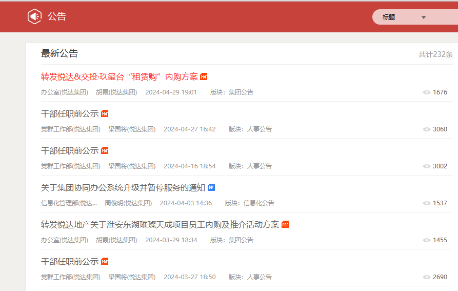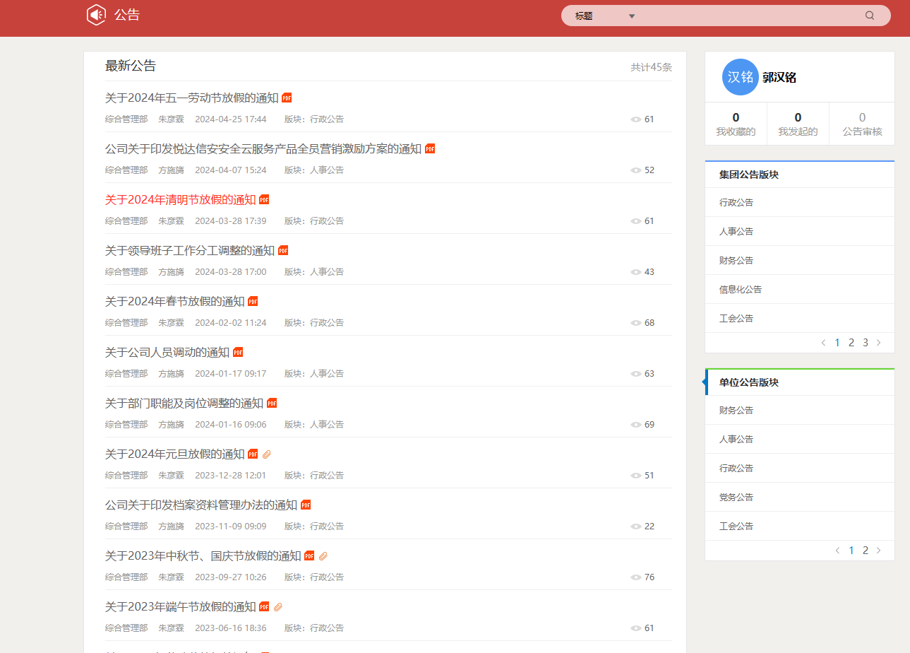 单位公告管理人员在此发布最新的单位公告,人事调动、放假通知等重要信息在此进行公告。